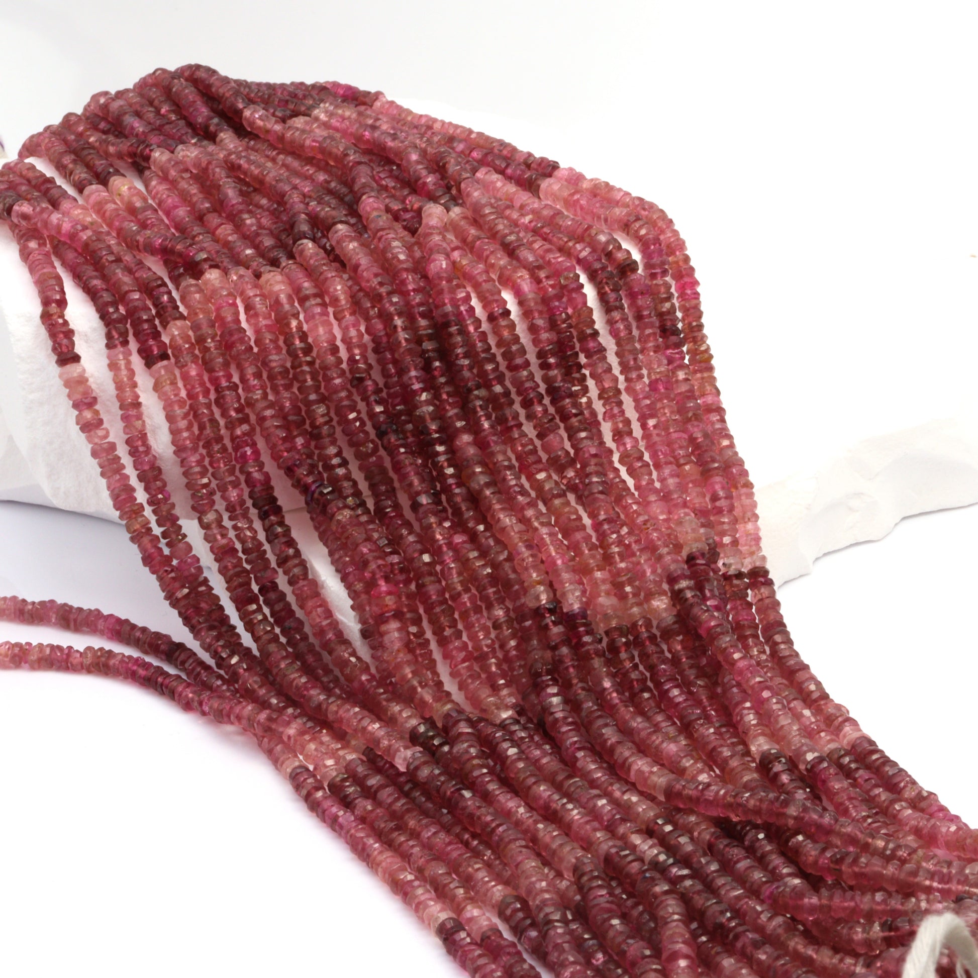 Ombre Pink Tourmaline 3.5mm Hand Faceted Rondelles Bead Strand