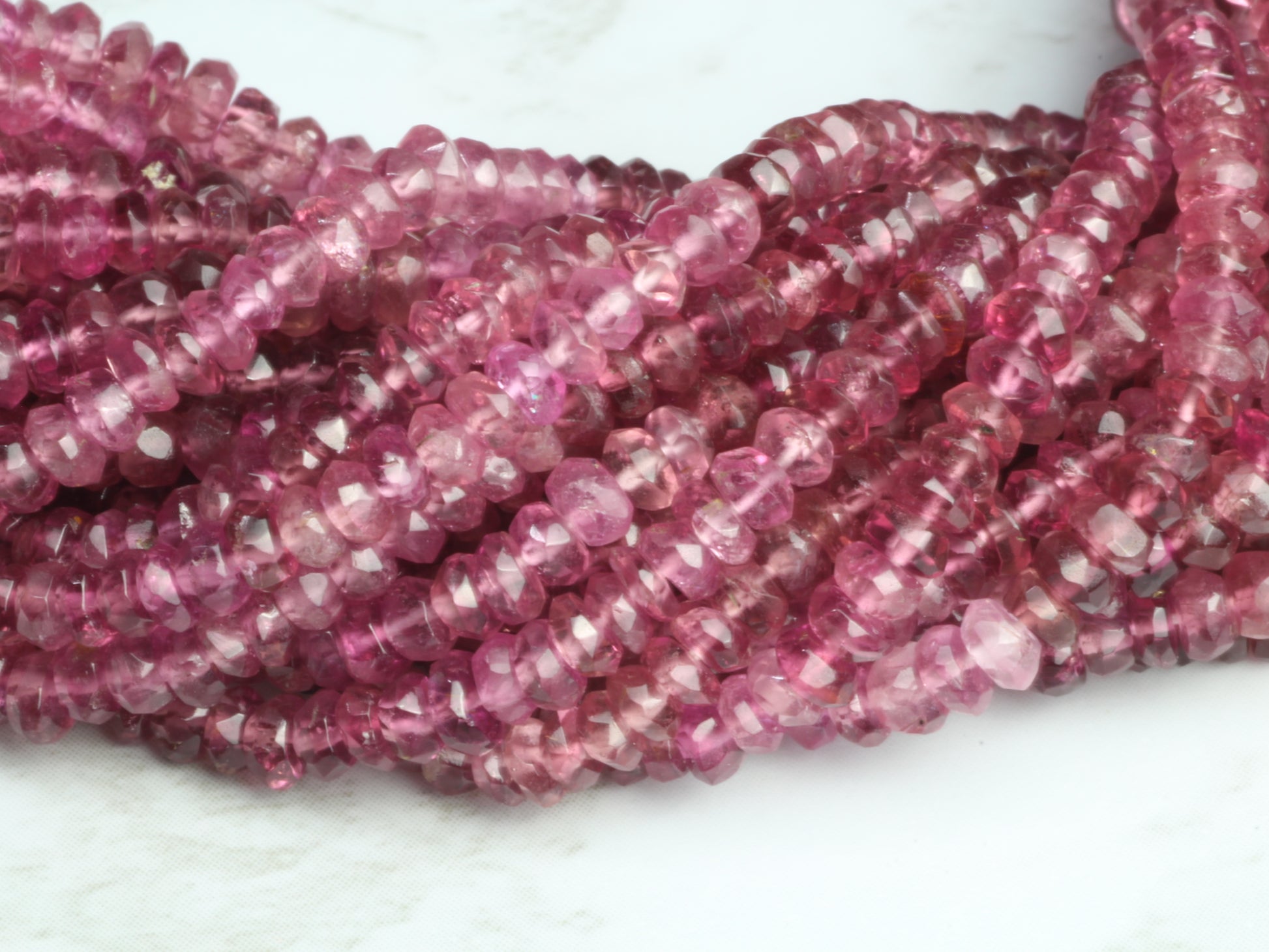 Ombre Pink Tourmaline 3mm Hand Faceted Rondelles Bead Strand