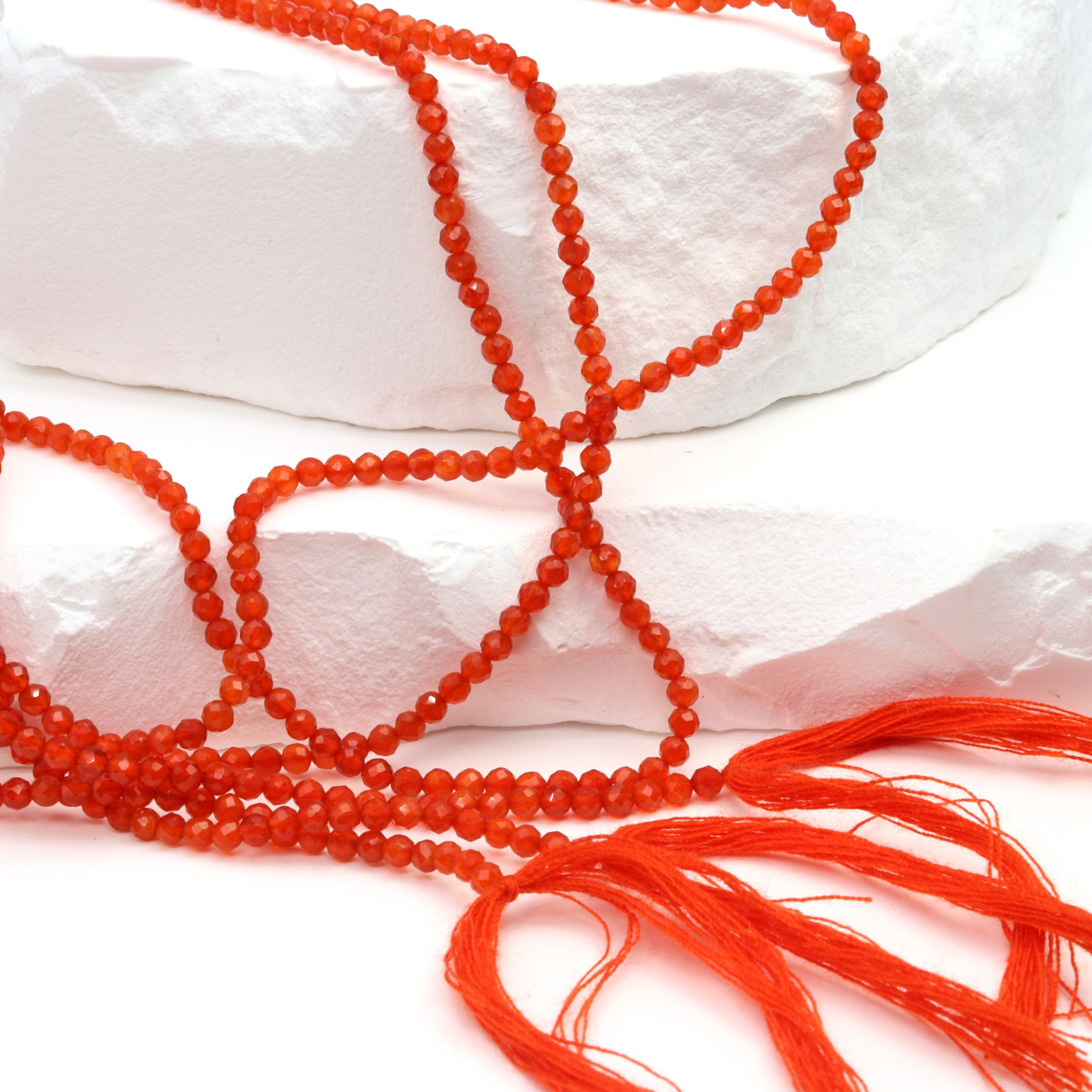 Orange Carnelian 2.5mm Faceted Rounds Bead Strand