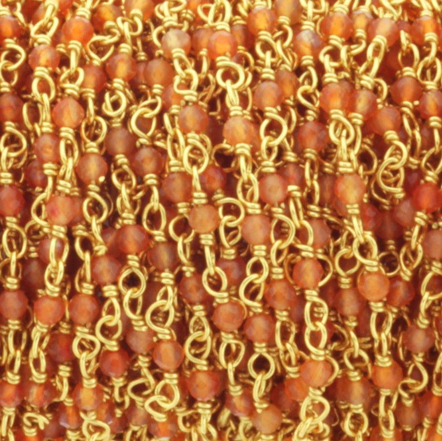 Orange Carnelian 2mm Faceted Rounds Rosary Chain Sterling Silver with Gold Plating Wire Wrap Chain by the Foot