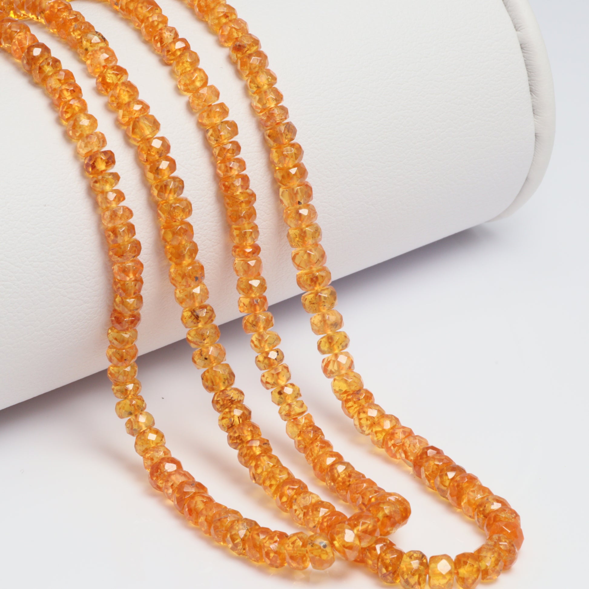 Spessartite Garnet 3mm - 4mm Hand Faceted Rondelles Bead Strand