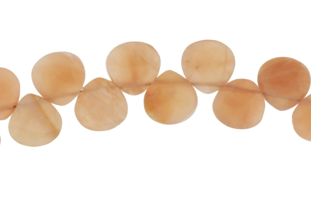 Peach Moonstone 8mm Faceted Heart Shaped Briolettes Bead Strand