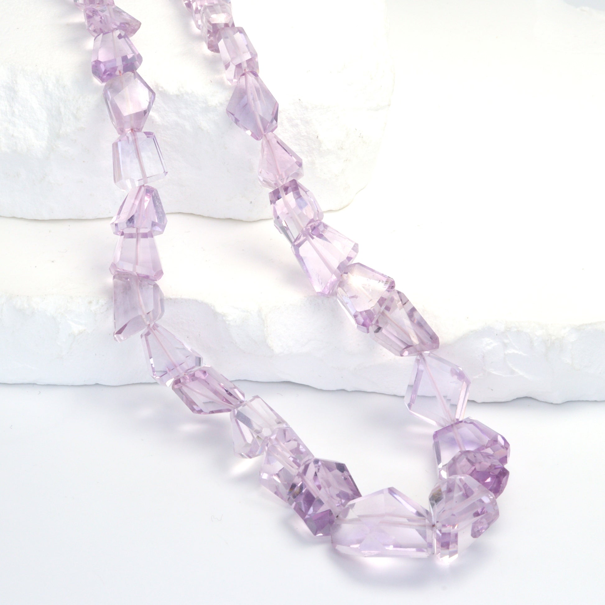Pink Amethyst 10x8mm - 15x12mm Faceted Nuggets Bead Strand