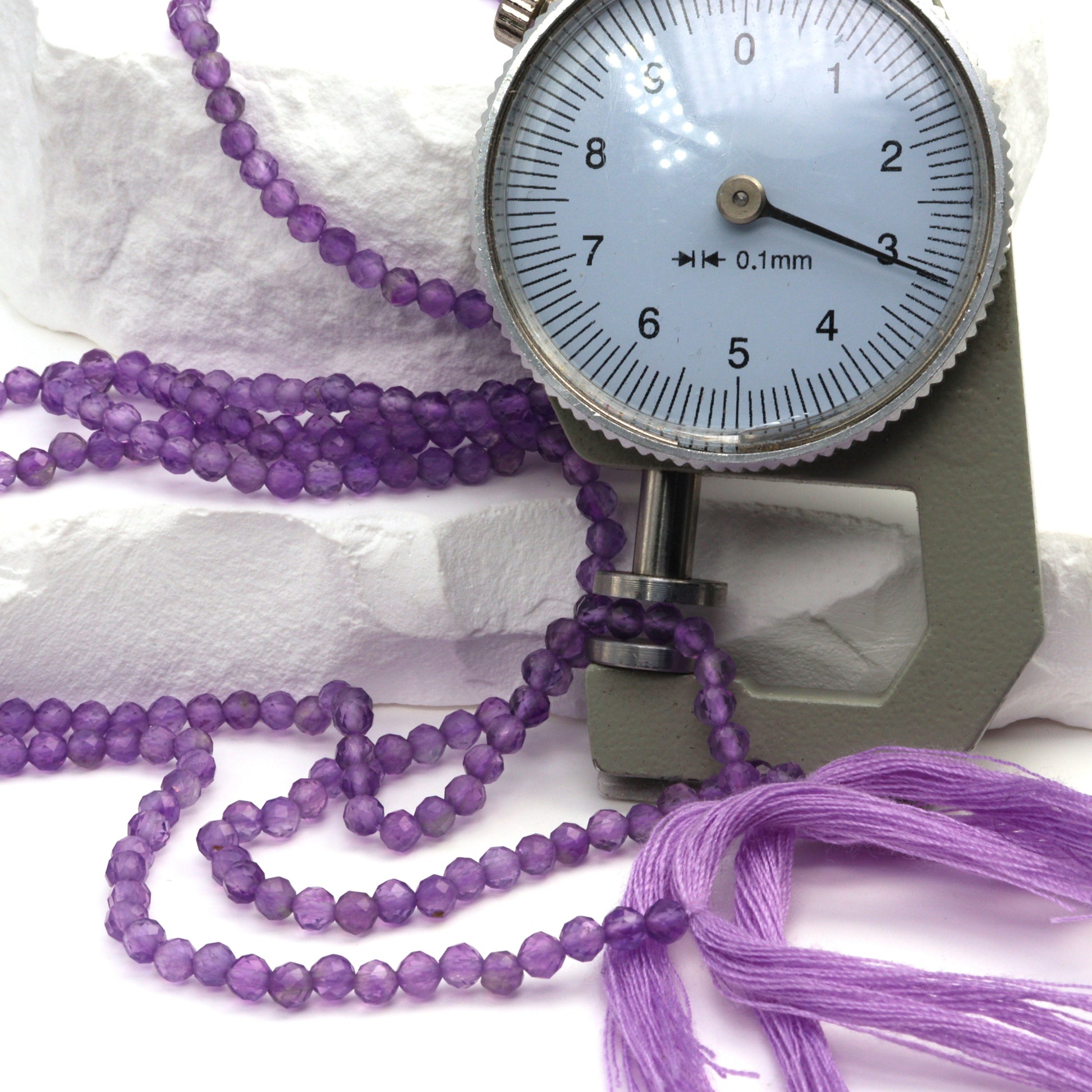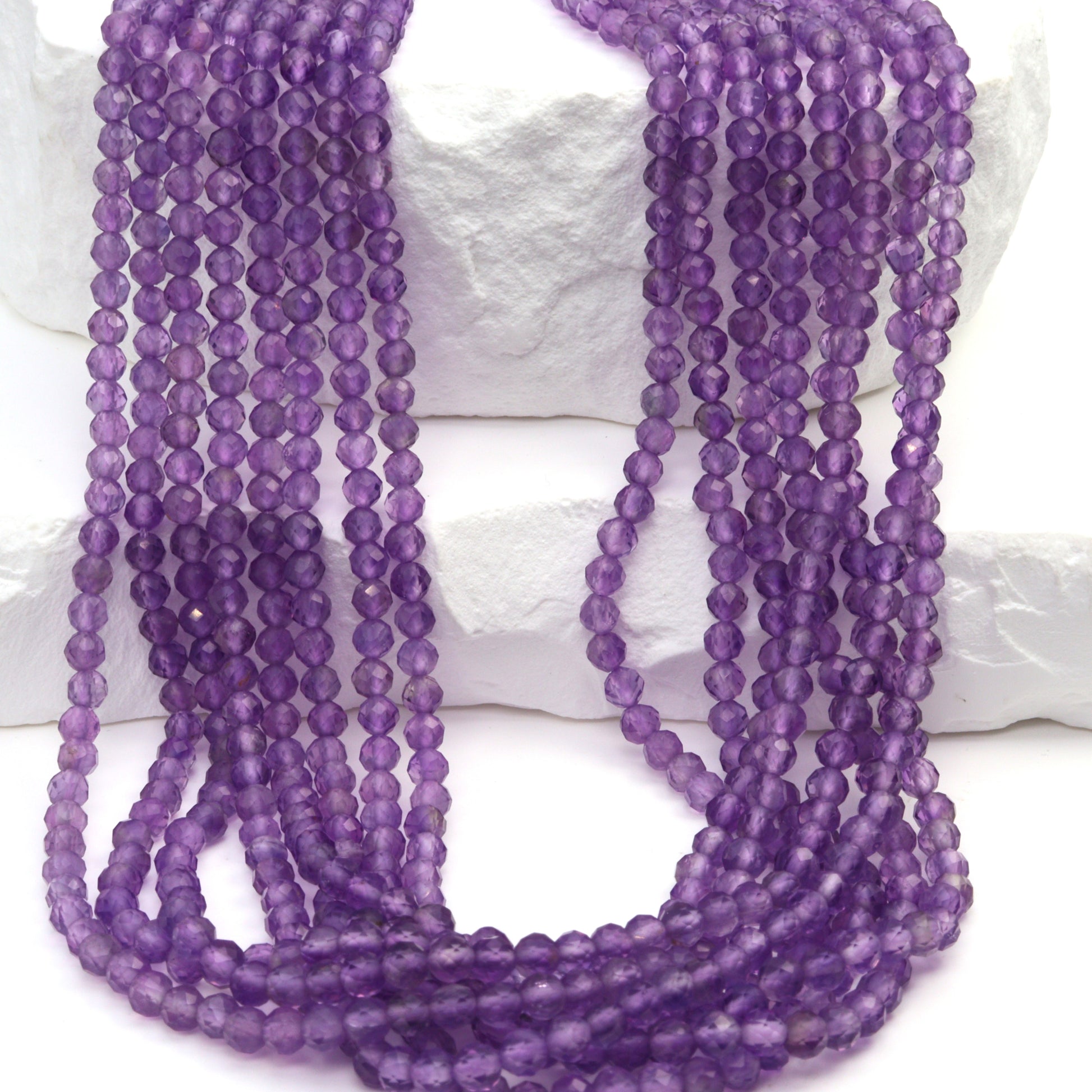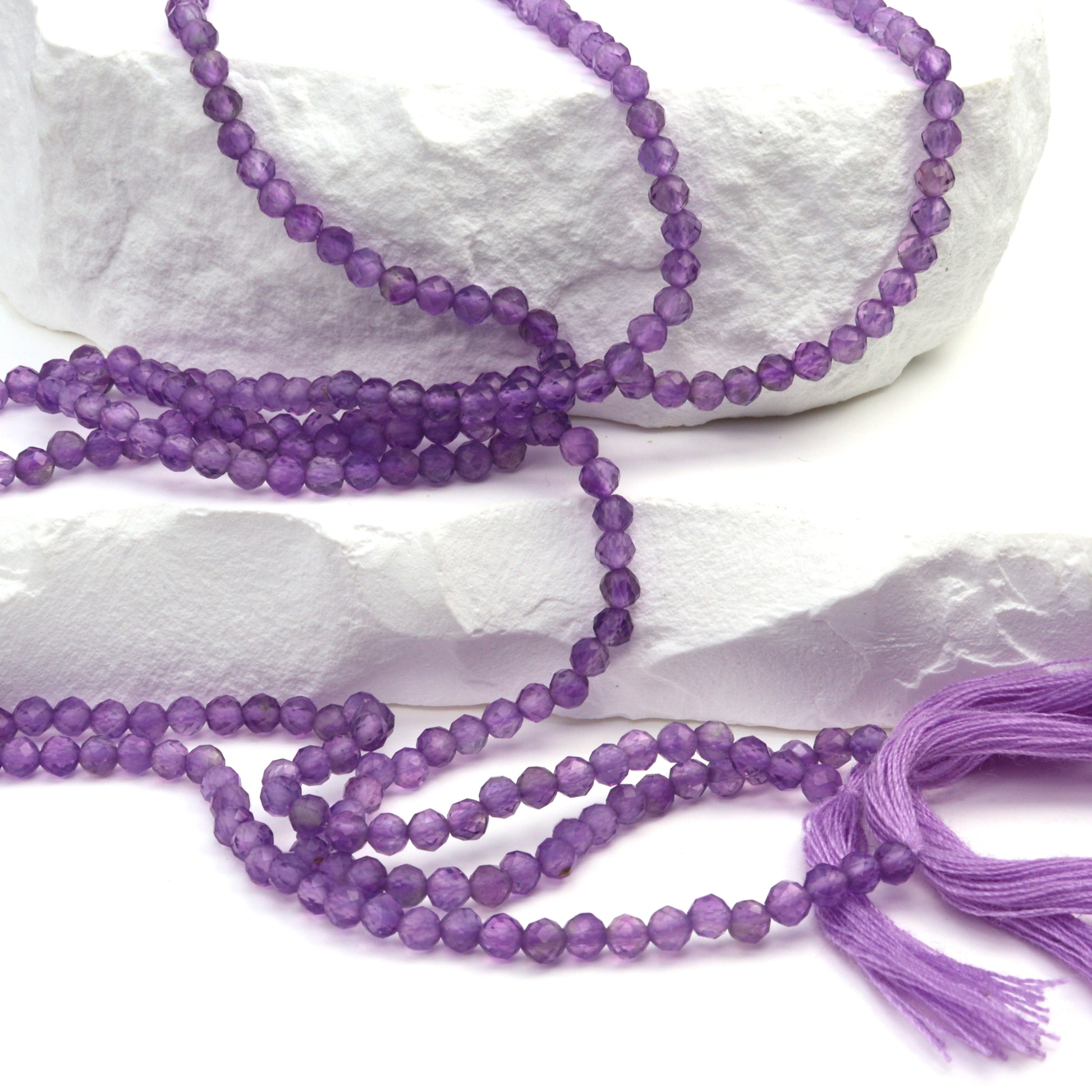 Discover the exquisite beauty of our 13" Full Bead Strand of Pink Amethyst Faceted Rounds. These 3mm beads are meticulously crafted to showcase the unique allure of pink amethyst, a gemstone renowned for its soothing, calming properties. Each bead is faceted to perfection, reflecting light in a mesmerizing dance that enhances the stone's natural color and clarity. Ideal for jewelry designers and stores, these wholesale gemstone beads can be transformed into stunning pieces of jewelry that captivate and inspire. With their delicate pink hue and sparkling facets, these beads are a testament to the timeless elegance of amethyst.
