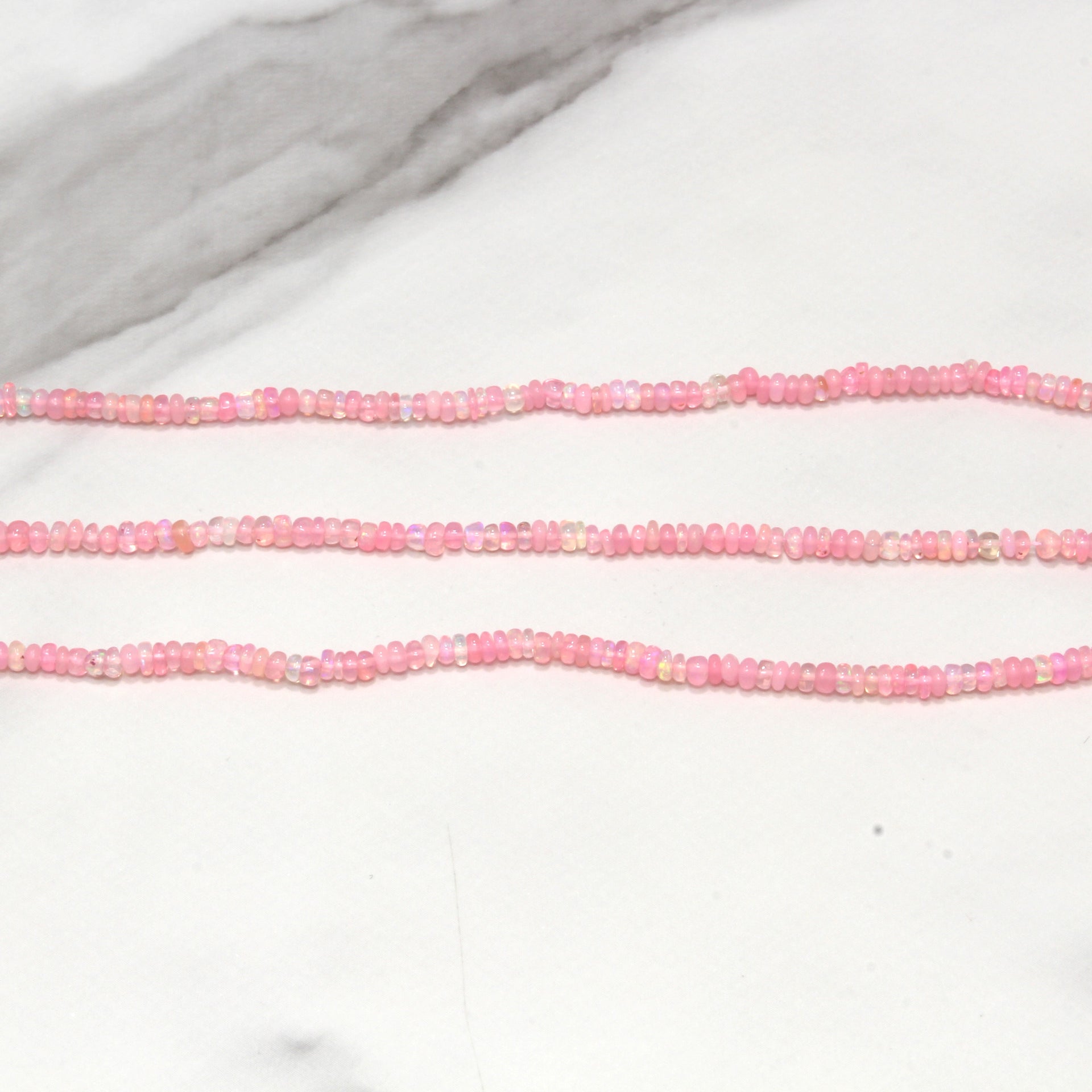 Pink Ethiopian Opal 3mm Smooth Rondelles Bead Strand