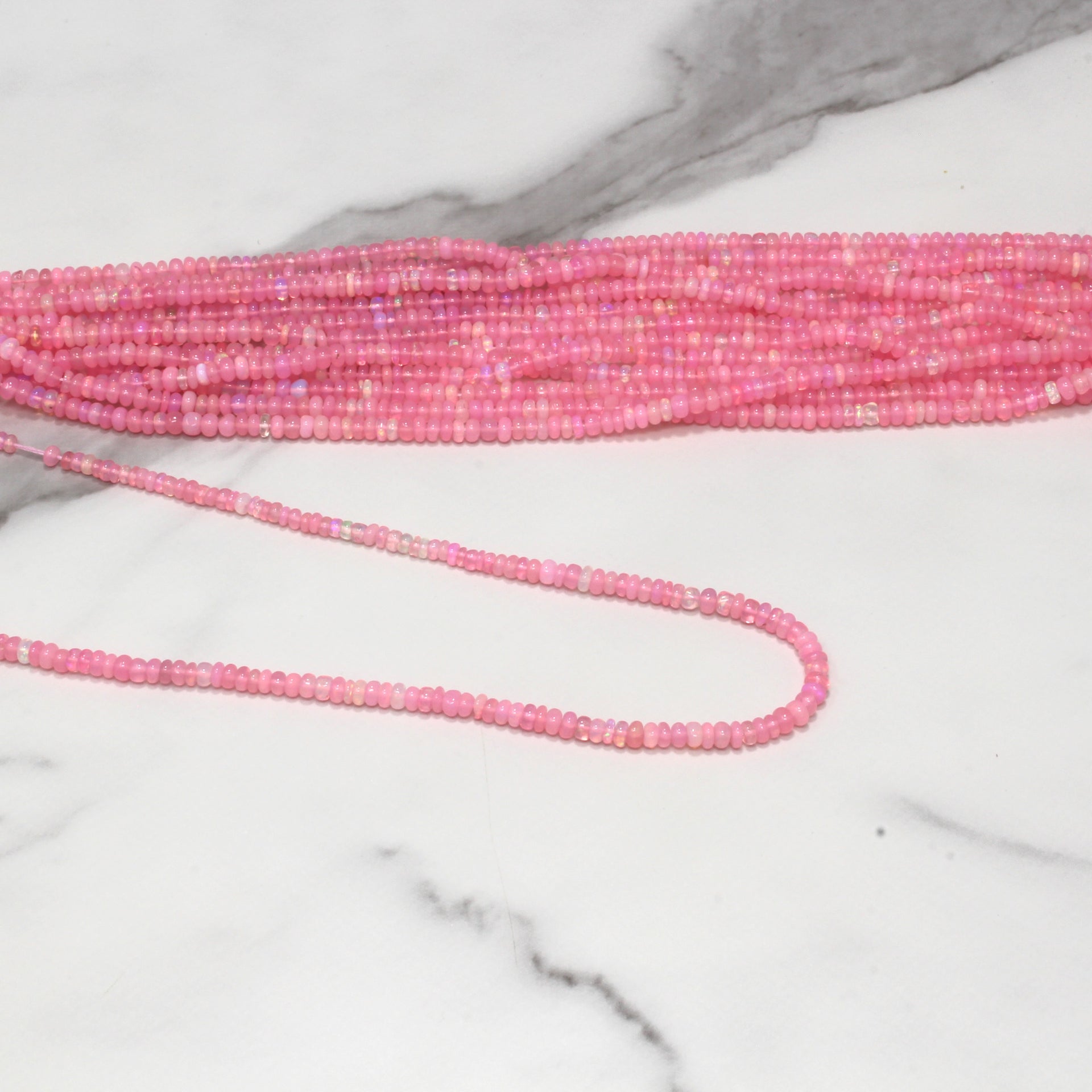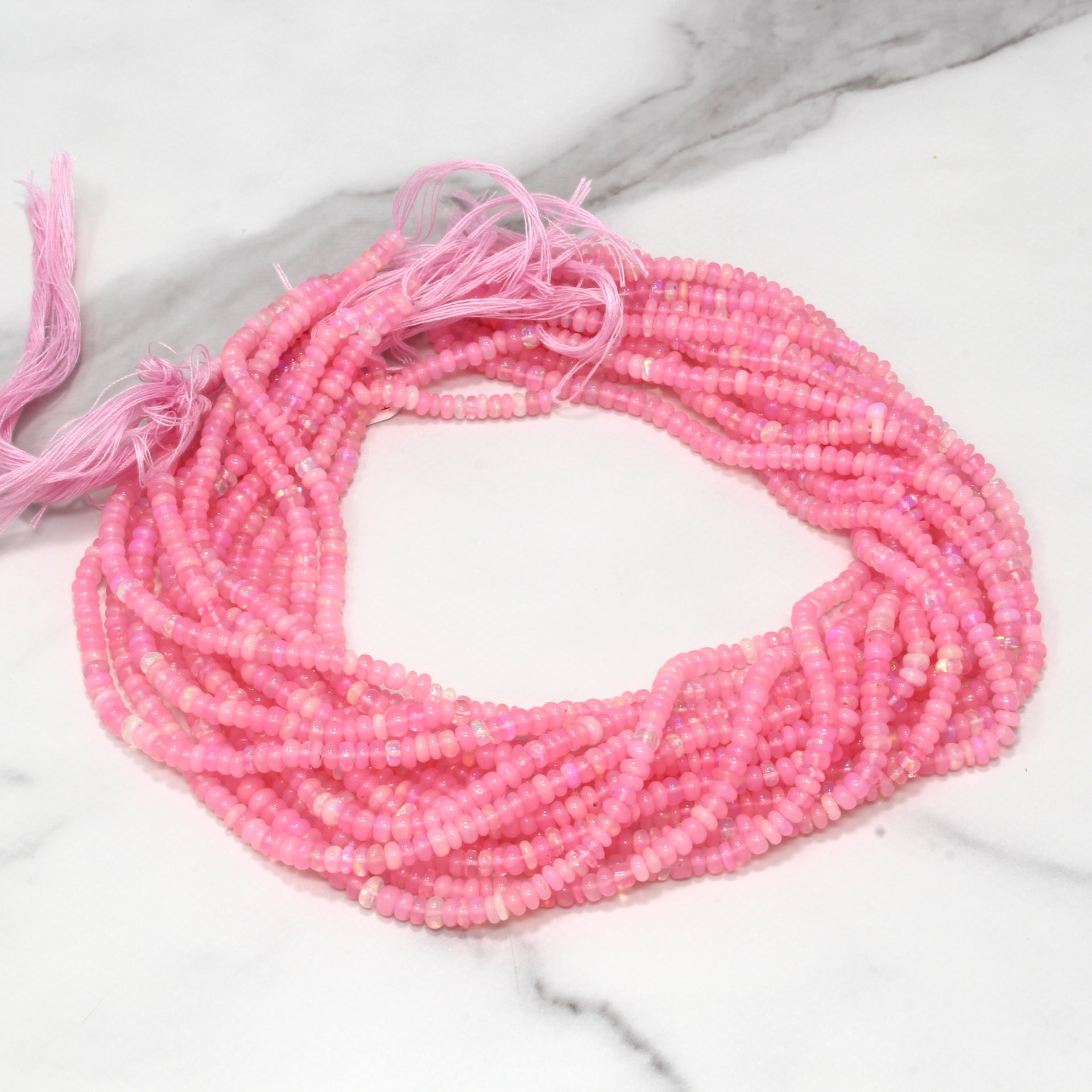 Pink Ethiopian Opal 4mm Smooth Rondelles Bead Strand