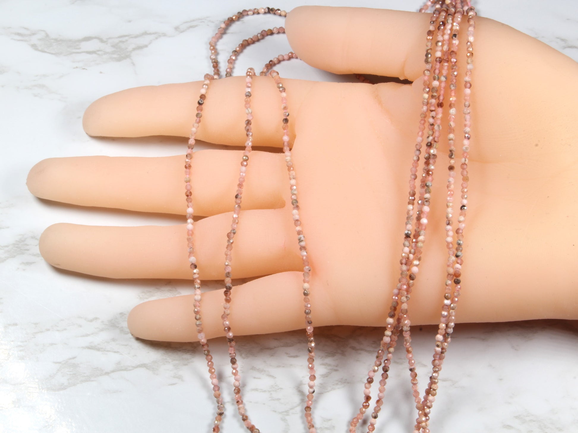 Pink Rhodochrosite 2mm Faceted Rounds Bead Strand