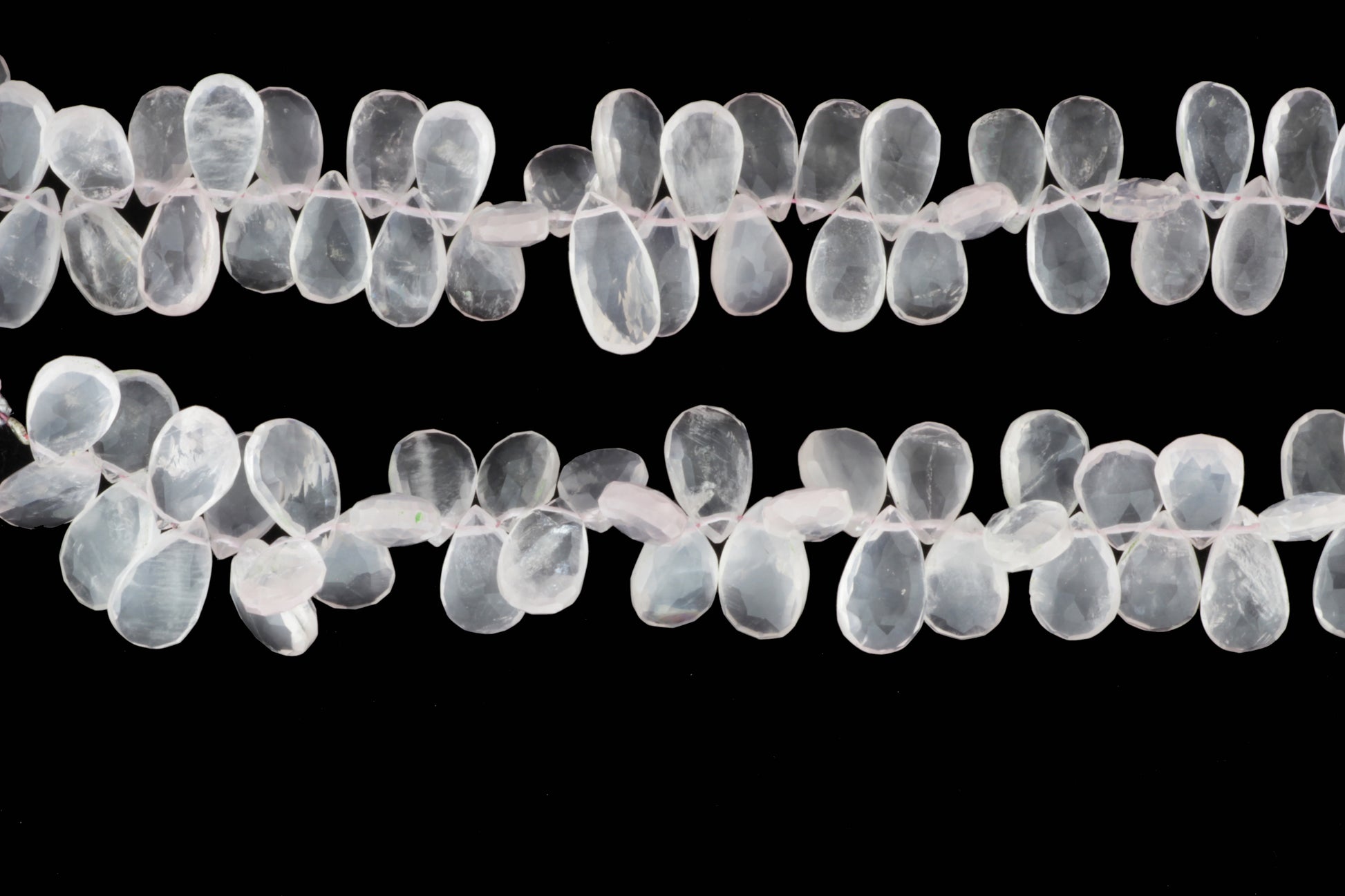 Pink Rose Quartz 12x7mm Faceted Pear Shaped Briolettes Bead Strand