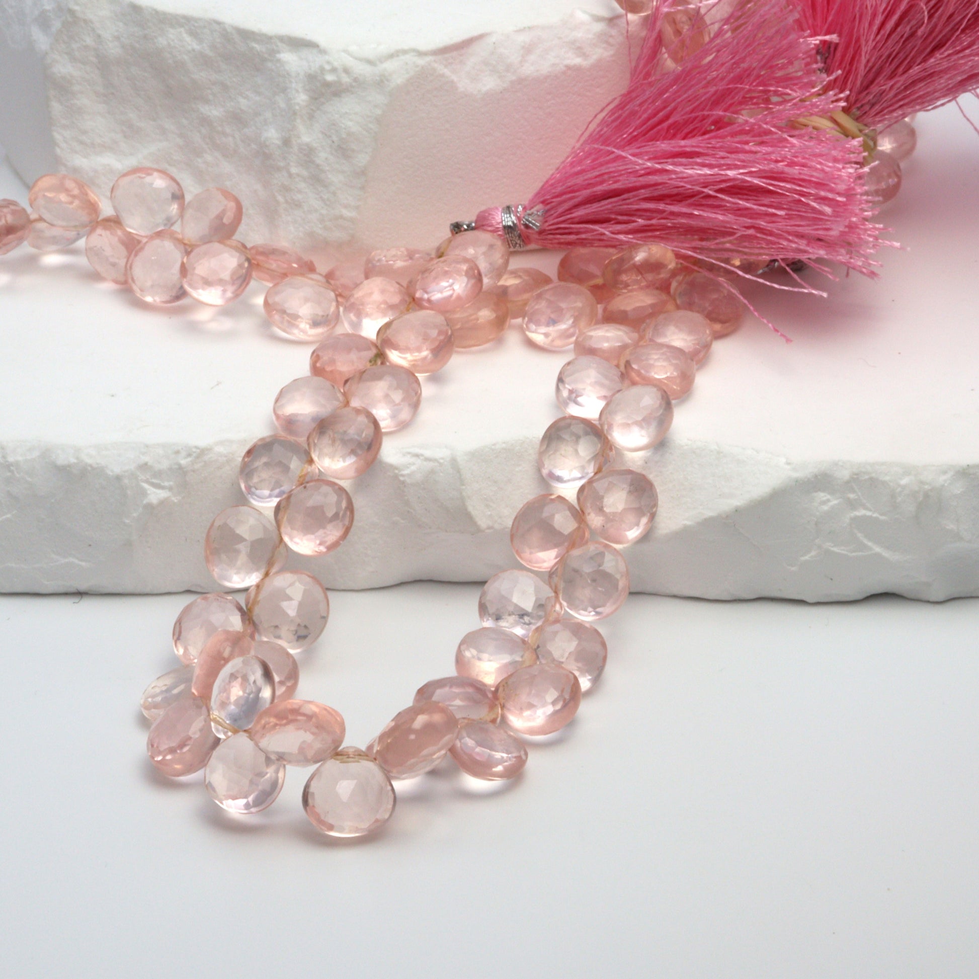 Pink Rose Quartz 8mm Faceted Heart Shaped Briolettes Bead Strand