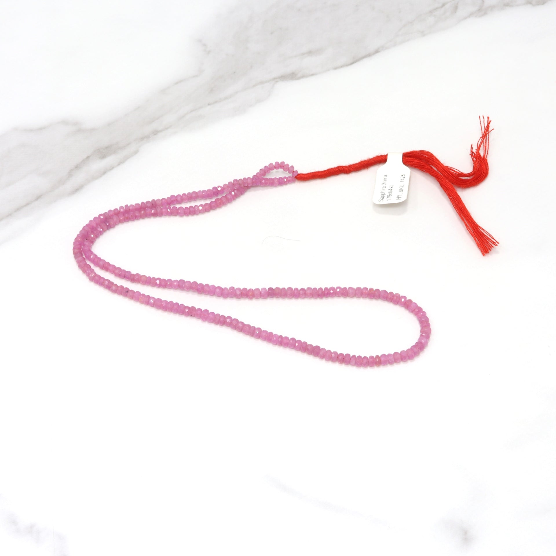 Pink Sapphire 3mm - 3.5mm Hand Faceted Rondelles Bead Strand