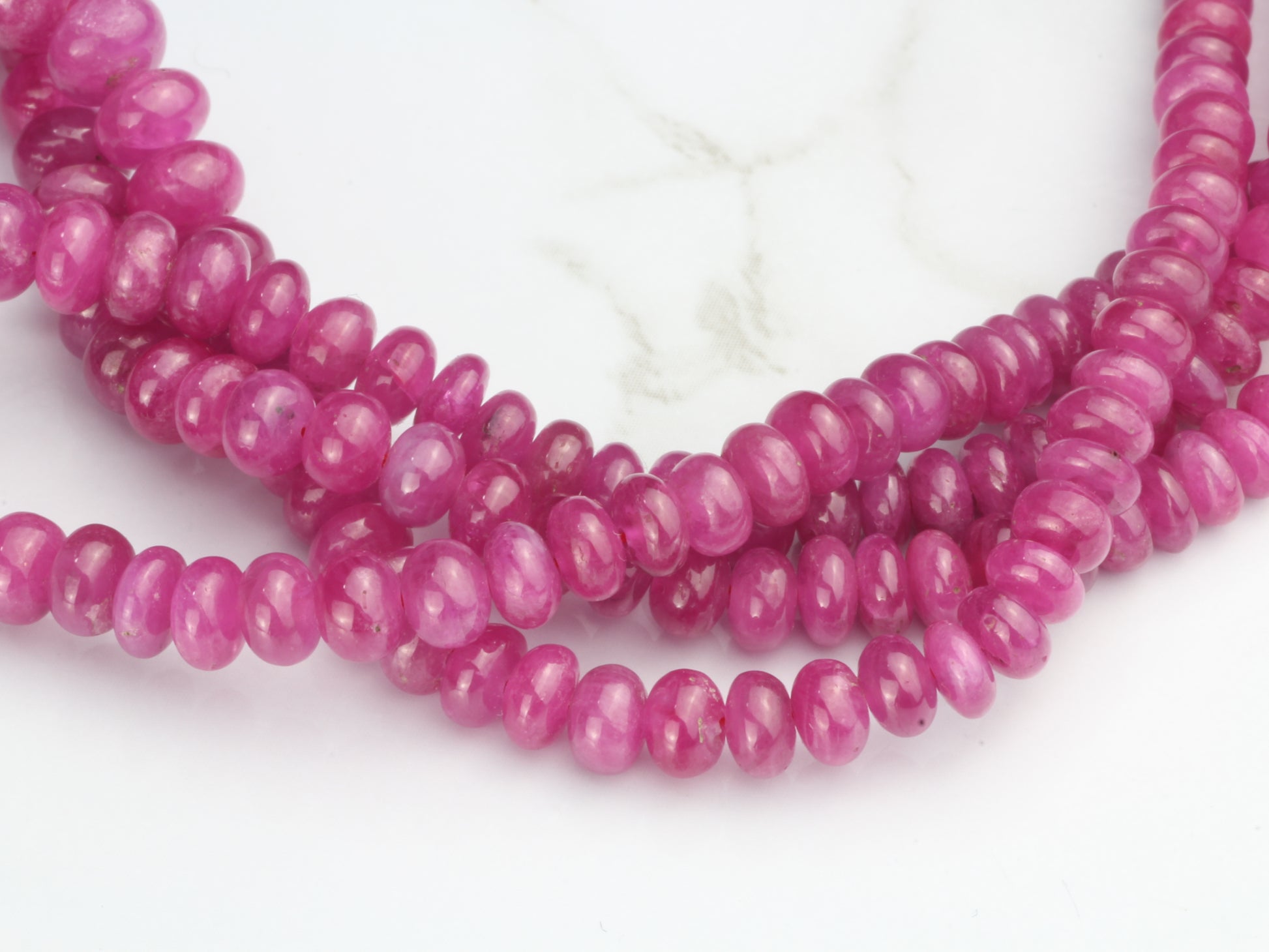 Pink Sapphire 4mm - 7mm Smooth Rondelles Bead Strand