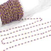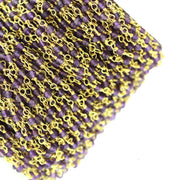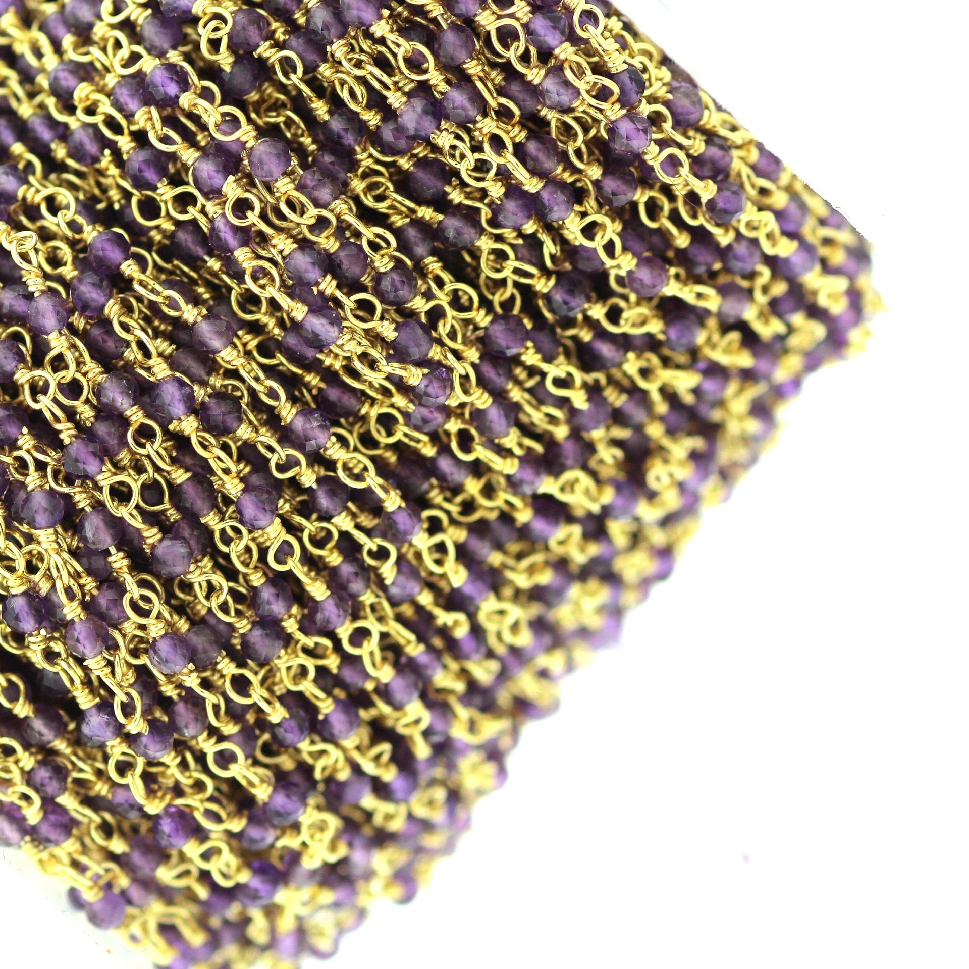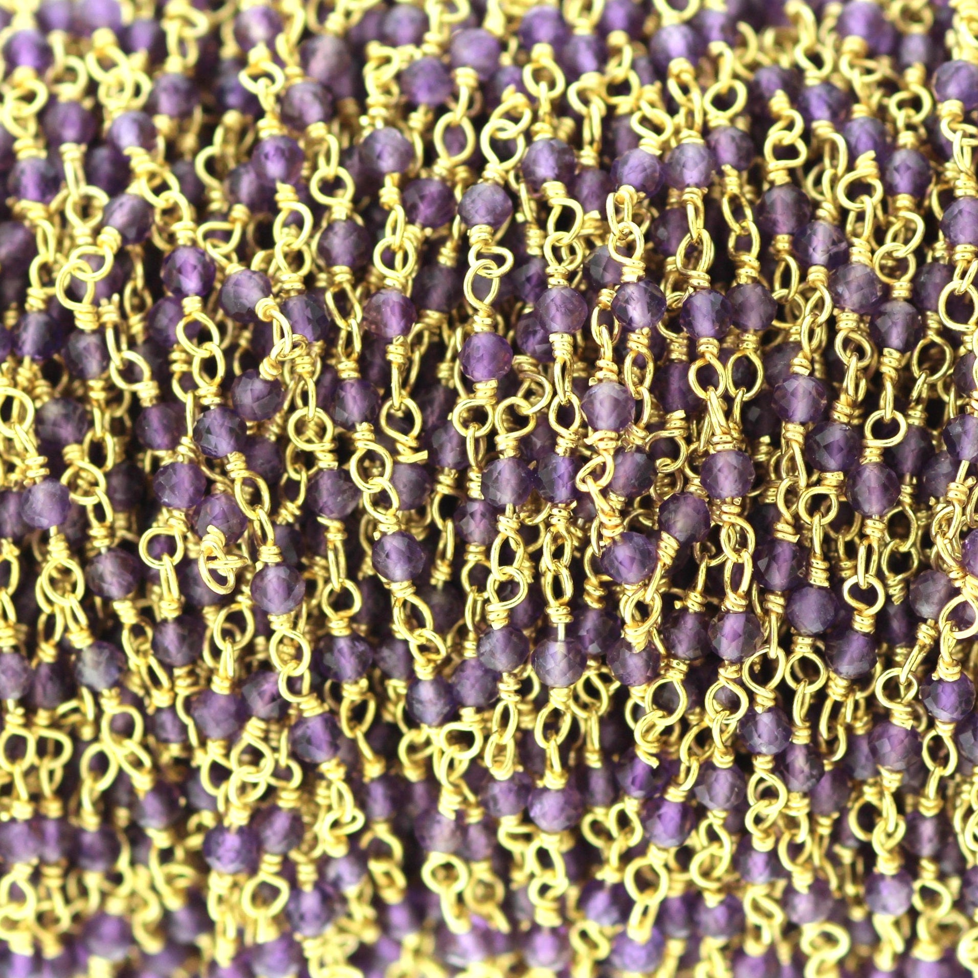 Purple Amethyst 2.5mm Faceted Rounds Rosary Chain Sterling Silver with Gold Plating Wire Wrap Chain by the Foot