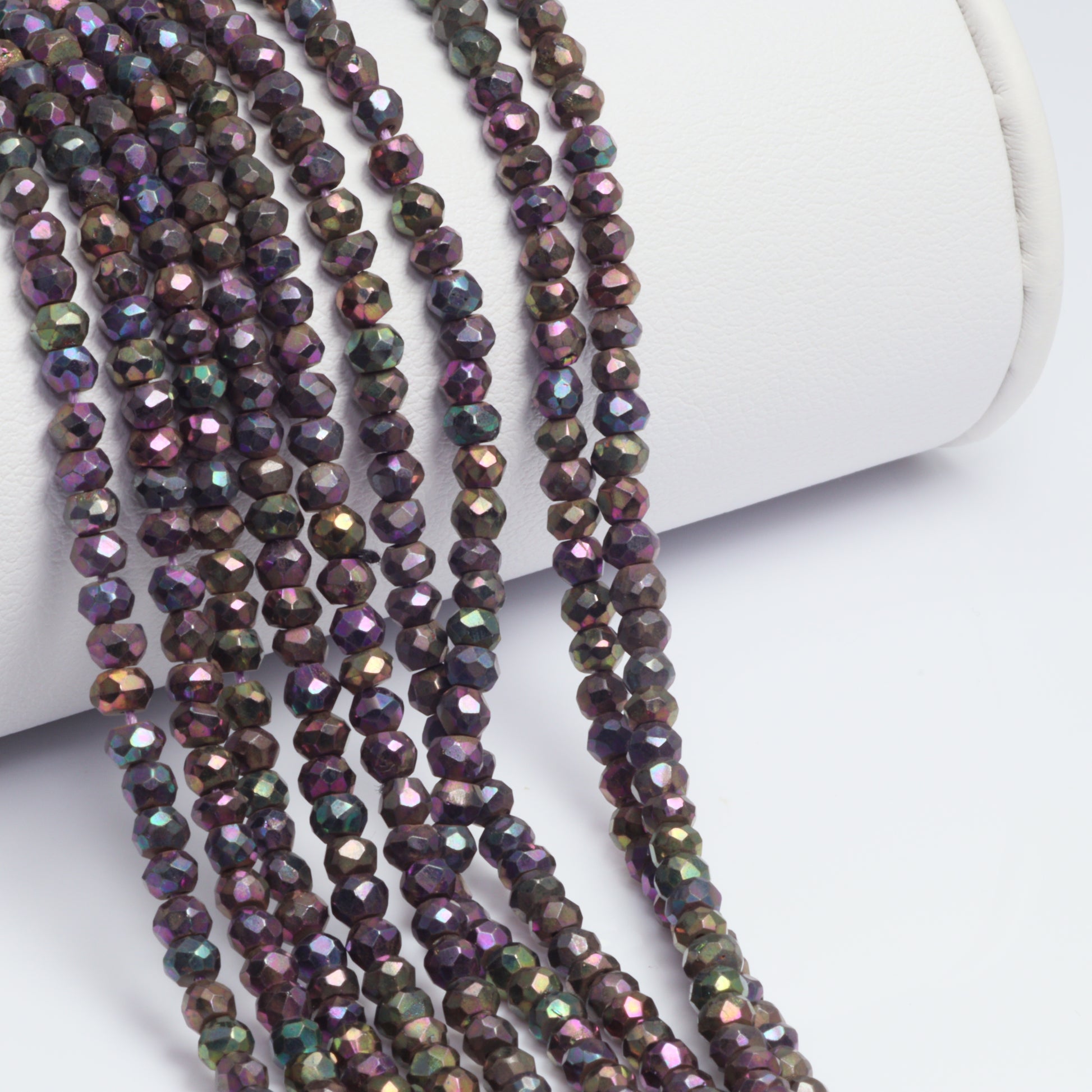 Purple Coated Black Spinel 3mm Hand Faceted Rondelles Bead Strand