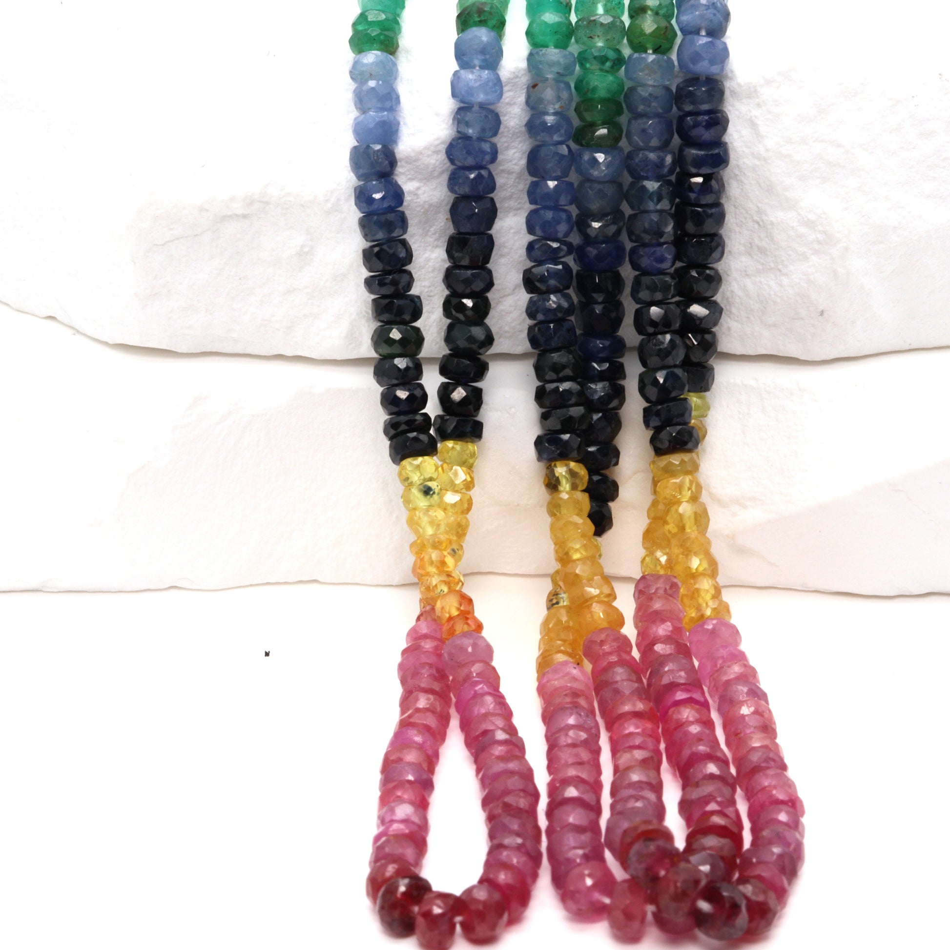 Rainbow Multi Ruby, Emerald, and Sapphire 3mm - 4mm Hand Faceted Rondelles Bead Strand