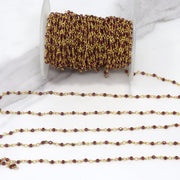 Red Garnet 2mm Faceted Rounds Rosary Chain Sterling Silver with Gold Plating Wire Wrap Chain by the Foot