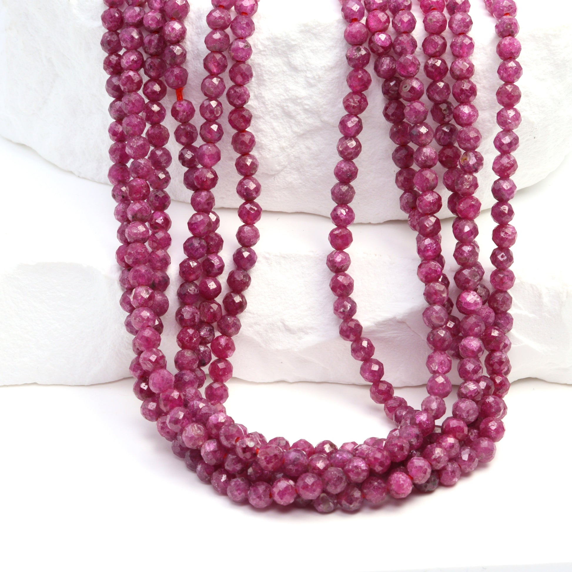 Red Ruby 3mm Faceted Rounds Bead Strand