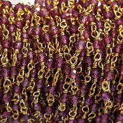 Rhodolite Garnet 2.5mm Faceted Rounds Rosary Chain Sterling Silver with Gold Plating Wire Wrap Chain by the Foot