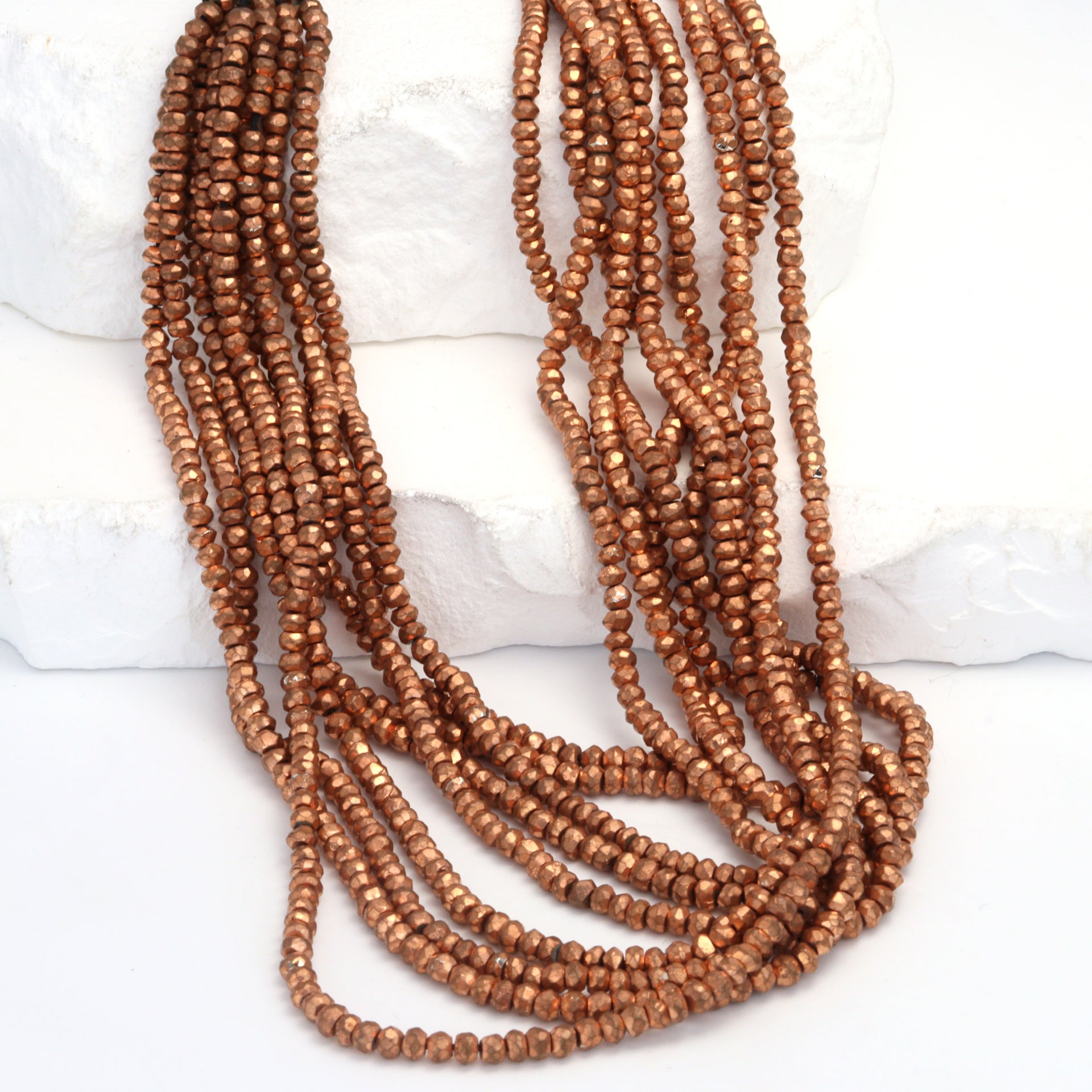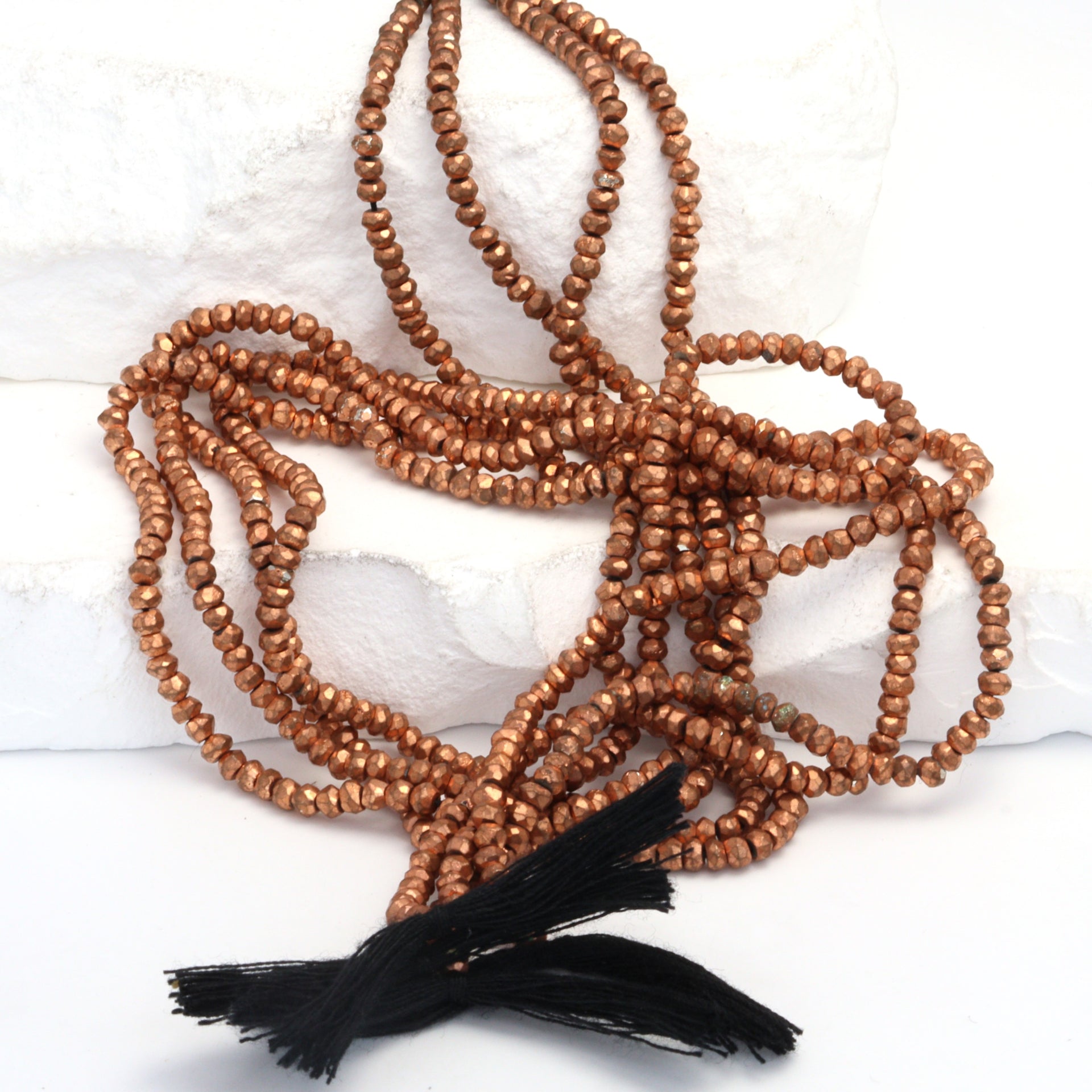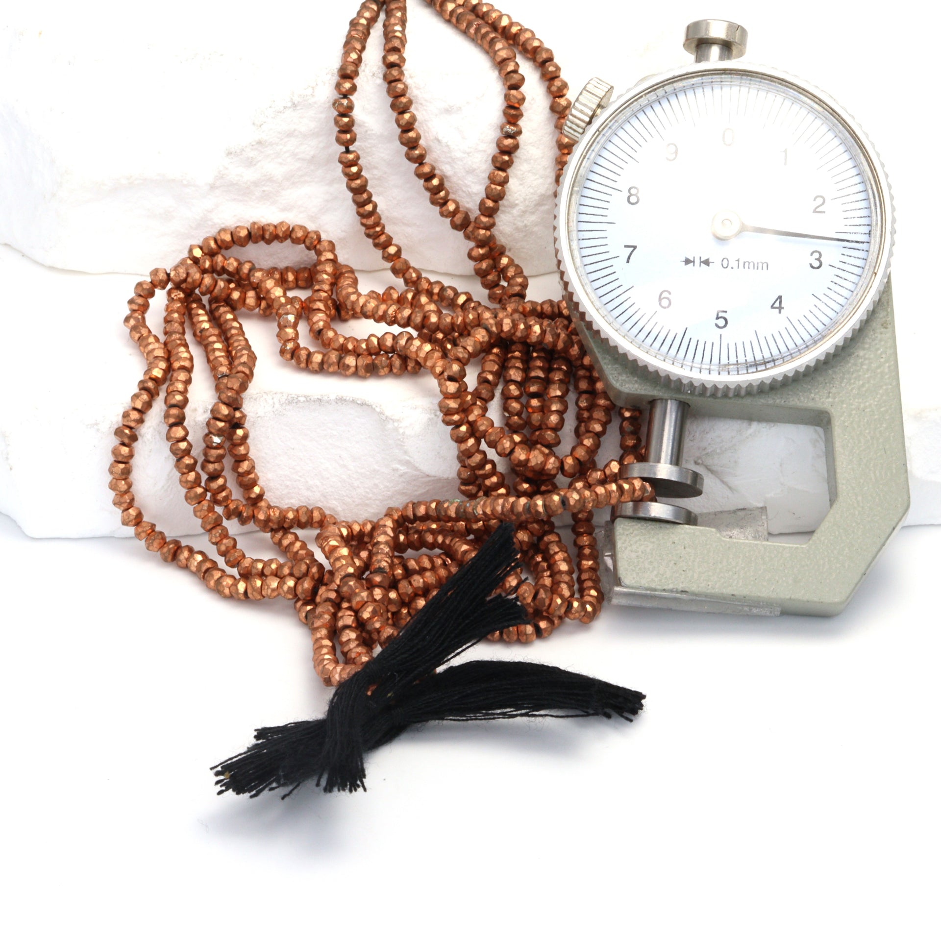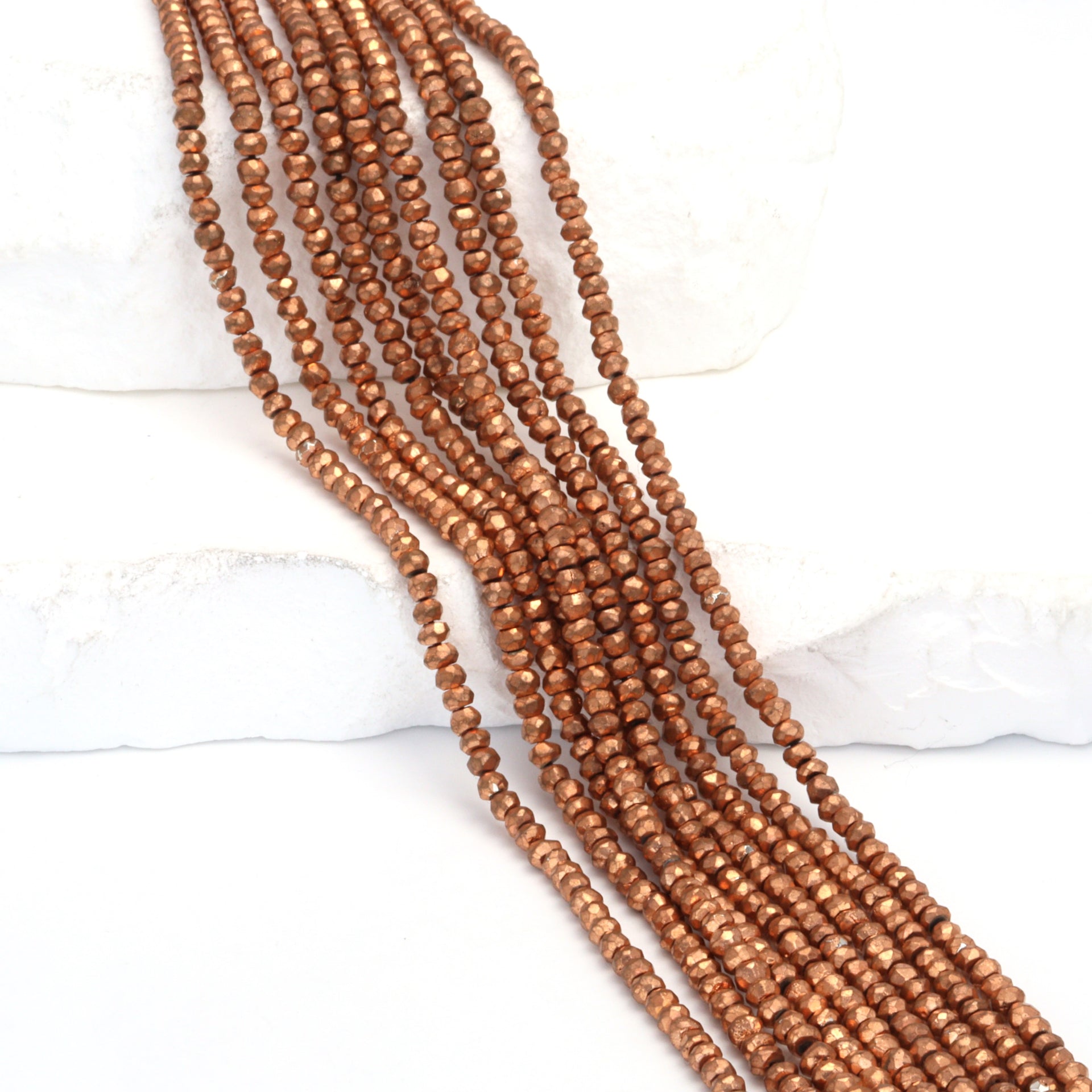 Rose Gold Plated Pyrite 2.5mm Hand Faceted Rondelles Bead Strand