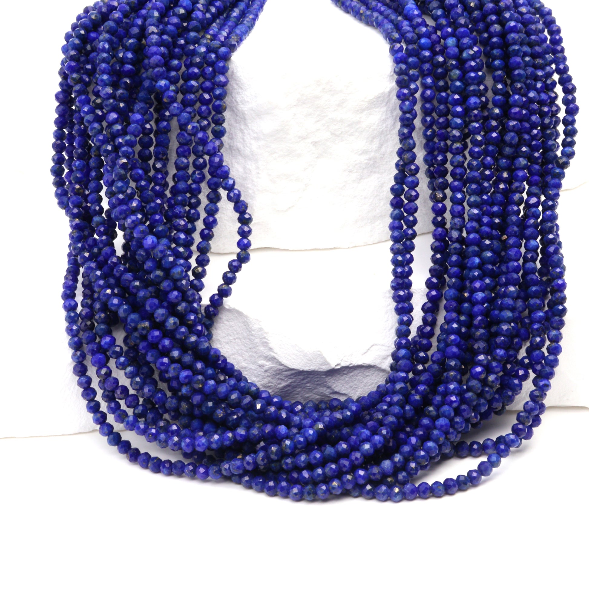 Royal Blue Lapis Lazuli 2mm Faceted Rounds Bead Strand