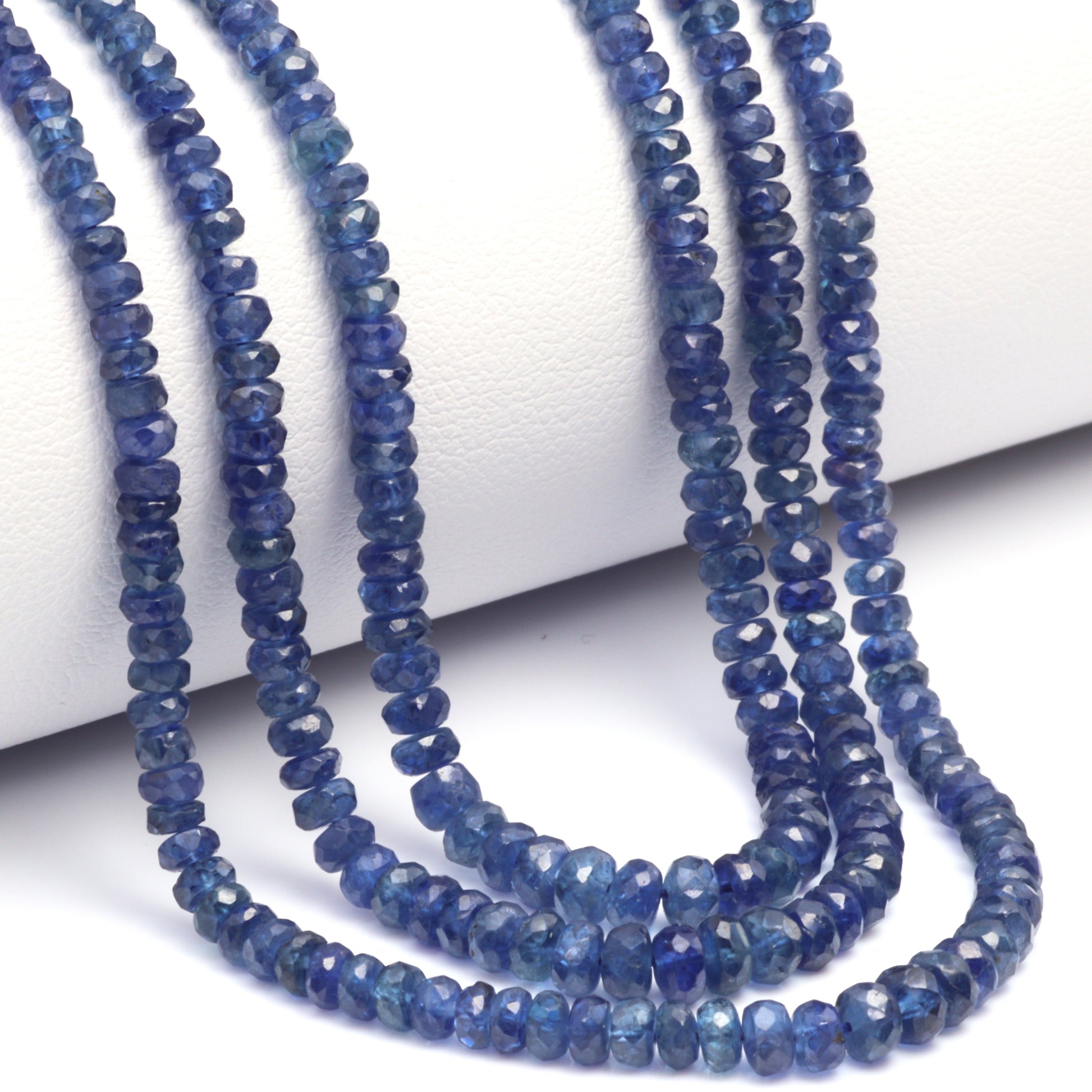 Elevate your jewelry collection with the exquisite elegance of our Royal Blue Sapphire Hand Faceted Rondelle Bead Strand. This luxurious necklace is a testament to timeless beauty, featuring a range of finely crafted rondelles in sizes from 2.5mm to 4mm. Each bead is hand-faceted, ensuring a unique and artisanal touch that maximizes the sapphire's natural brilliance and depth. The Royal Blue Sapphire, known for its majestic and intense blue hue, is carefully selected to ensure fine gem quality, offering a stunning display of sophistication and allure. This strand is perfect for creating high-end jewelry pieces that demand attention, whether it be a statement necklace, an elegant bracelet, or sophisticated earrings. Revered not just for its breathtaking appearance but also for its symbolism of wisdom and royalty, the Royal Blue Sapphire adds a touch of luxury and significance to your designs. Ideal for designers and retailers catering to clients who seek premium, eye-catching jewelry, our Royal Blue Sapphire Rondelle Bead Strand promises to captivate with its unrivaled quality and exquisite craftsmanship.