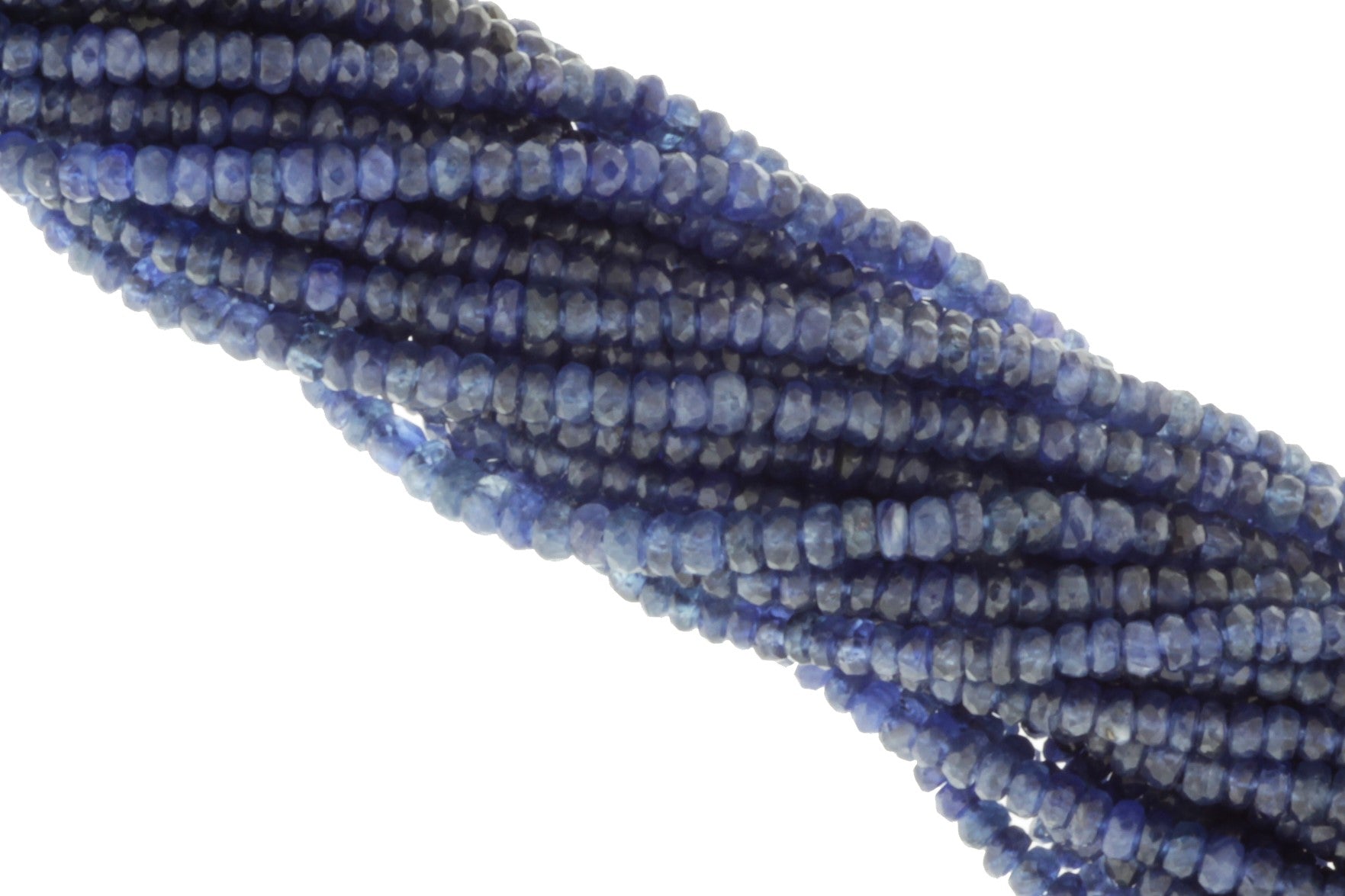 Royal Blue Sapphire 3mm - 3.5mm Hand Faceted Rondelles Bead Strand
