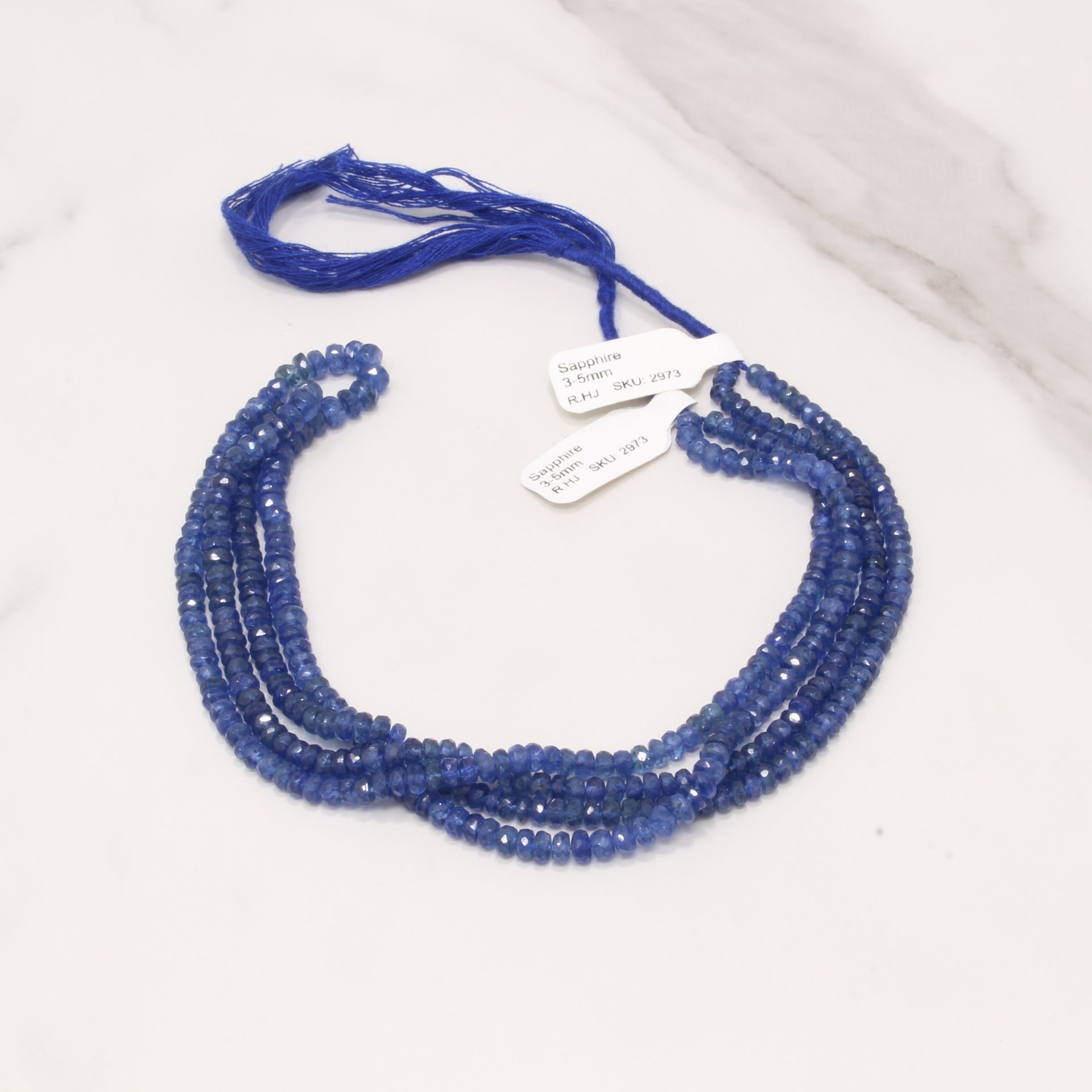 AA Royal Blue Sapphire 3mm - 4.5mm Hand Faceted Rondelles Bead Strand