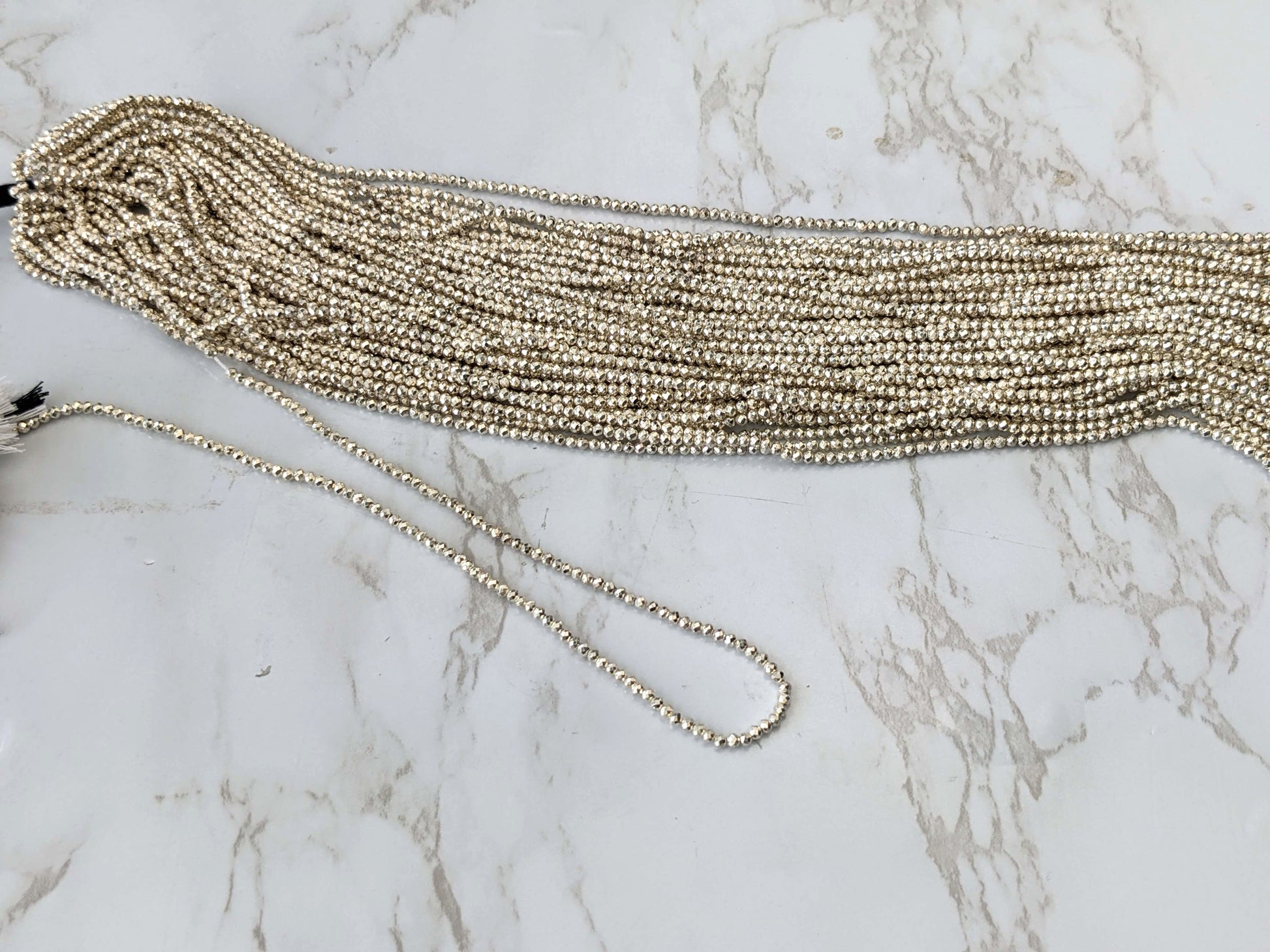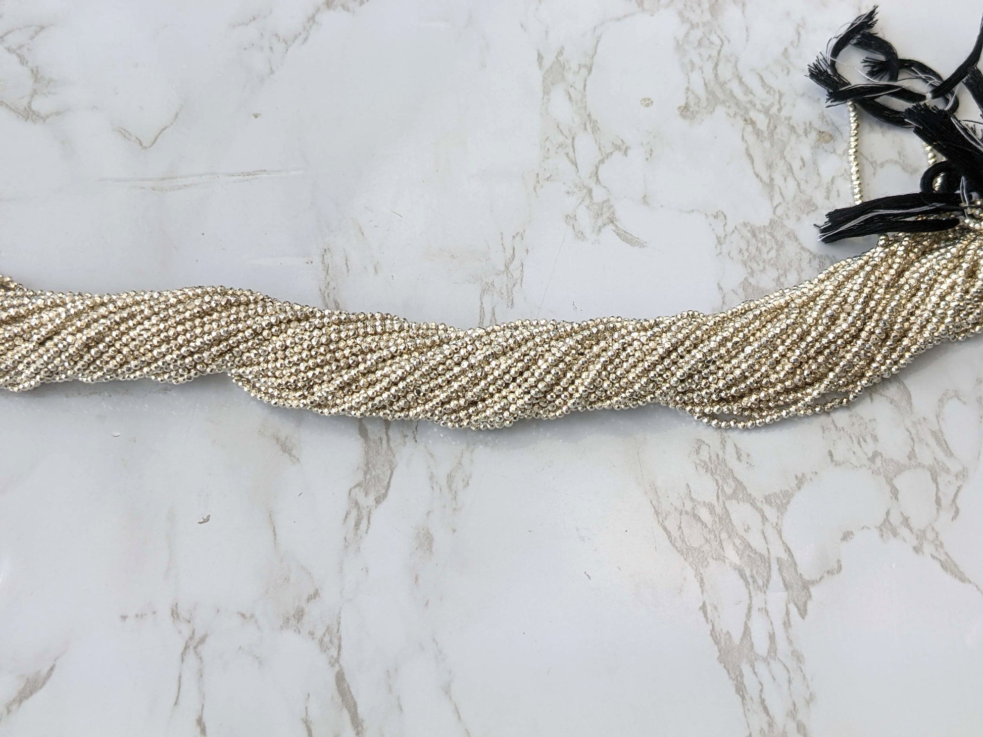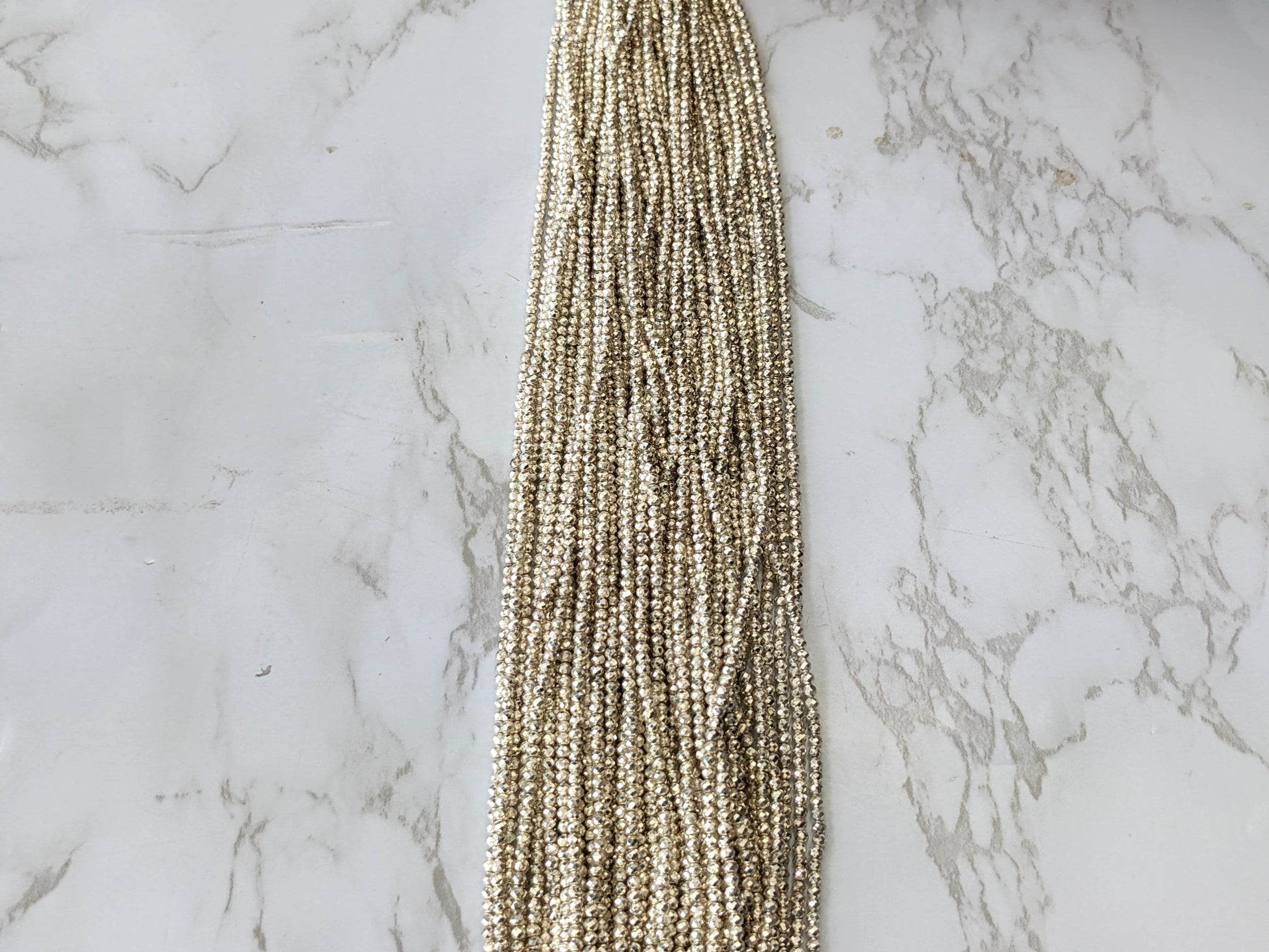 Silver Plated Pyrite 2mm Faceted Rounds Bead Strand