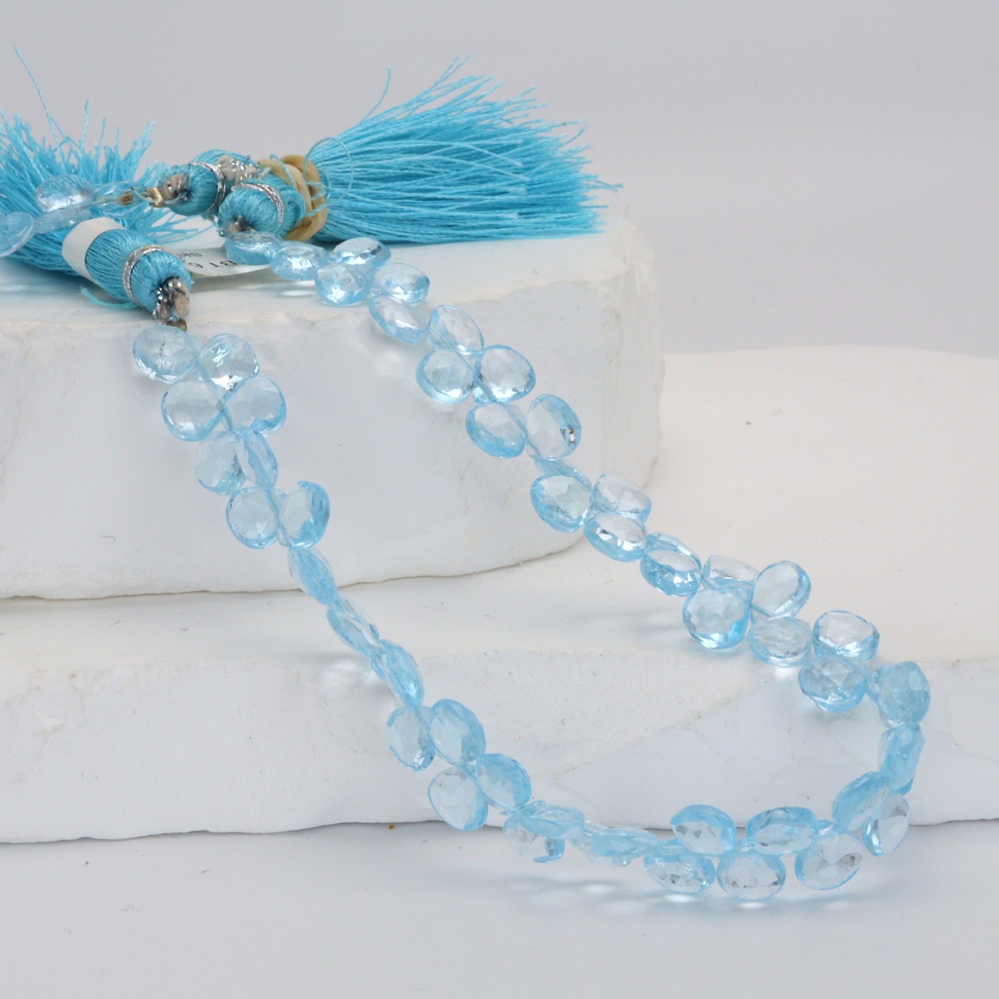 Sky Blue Topaz 6mm Faceted Heart Shaped Briolettes Bead Strand