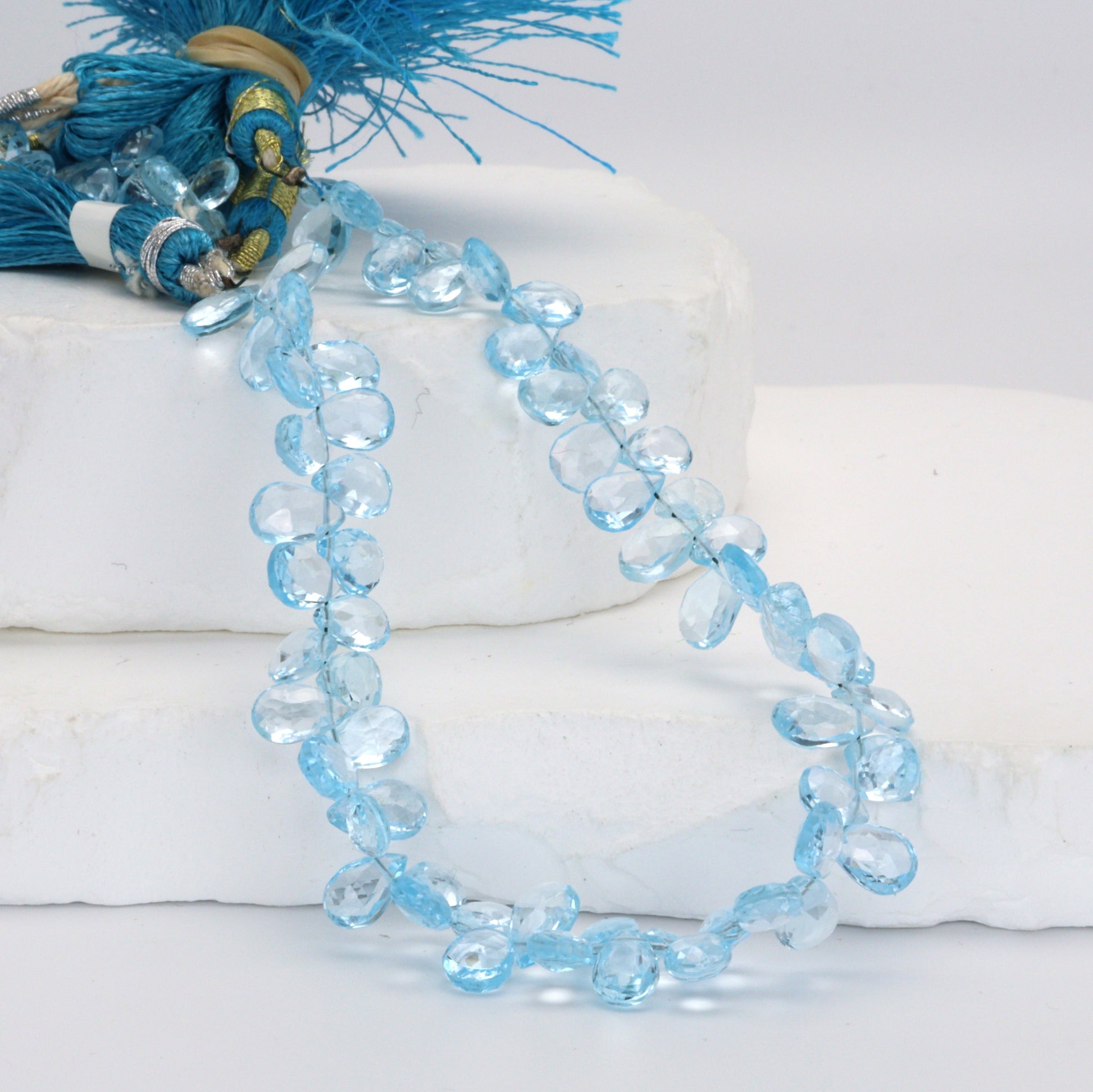 Sky Blue Topaz 8x5mm Faceted Pear Shaped Briolettes Bead Strand