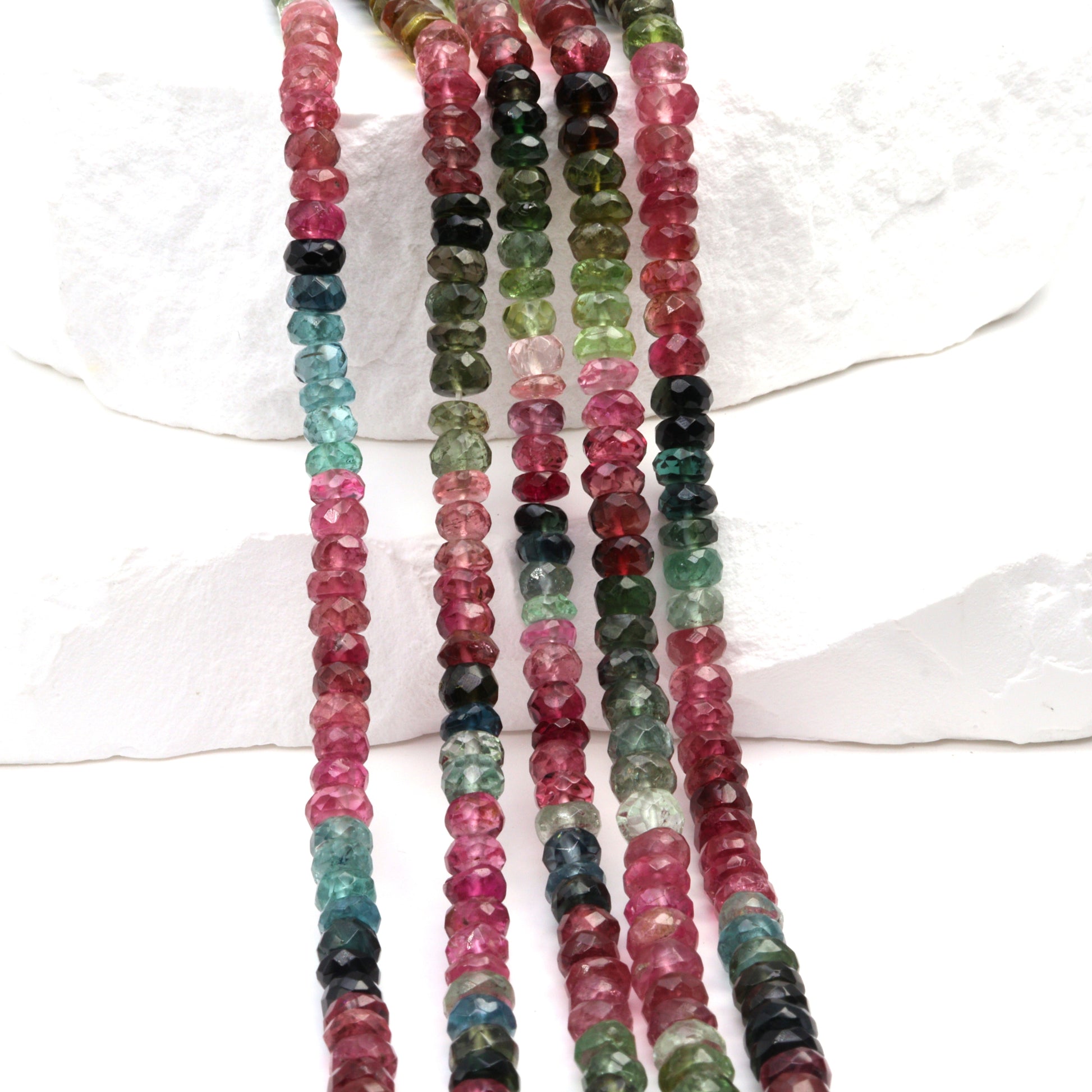 Discover the vibrant allure of our 13" Full Bead Strand of Watermelon Tourmaline Faceted Rondelles. These 4mm beads are meticulously crafted to showcase the unique, multi-colored beauty of watermelon tourmaline, a gemstone cherished for its rich hues of pink, green, and white. Ideal for jewelry designers and stores, these gemstone beads can be transformed into stunning pieces that captivate with their natural charm. Each bead is faceted to enhance its color and sparkle, making them a perfect choice for creating eye-catching, high-quality jewelry. As a trusted gemstone wholesaler, we ensure that every bead strand we supply is of the highest quality, promising a product that will delight your customers and elevate your designs.