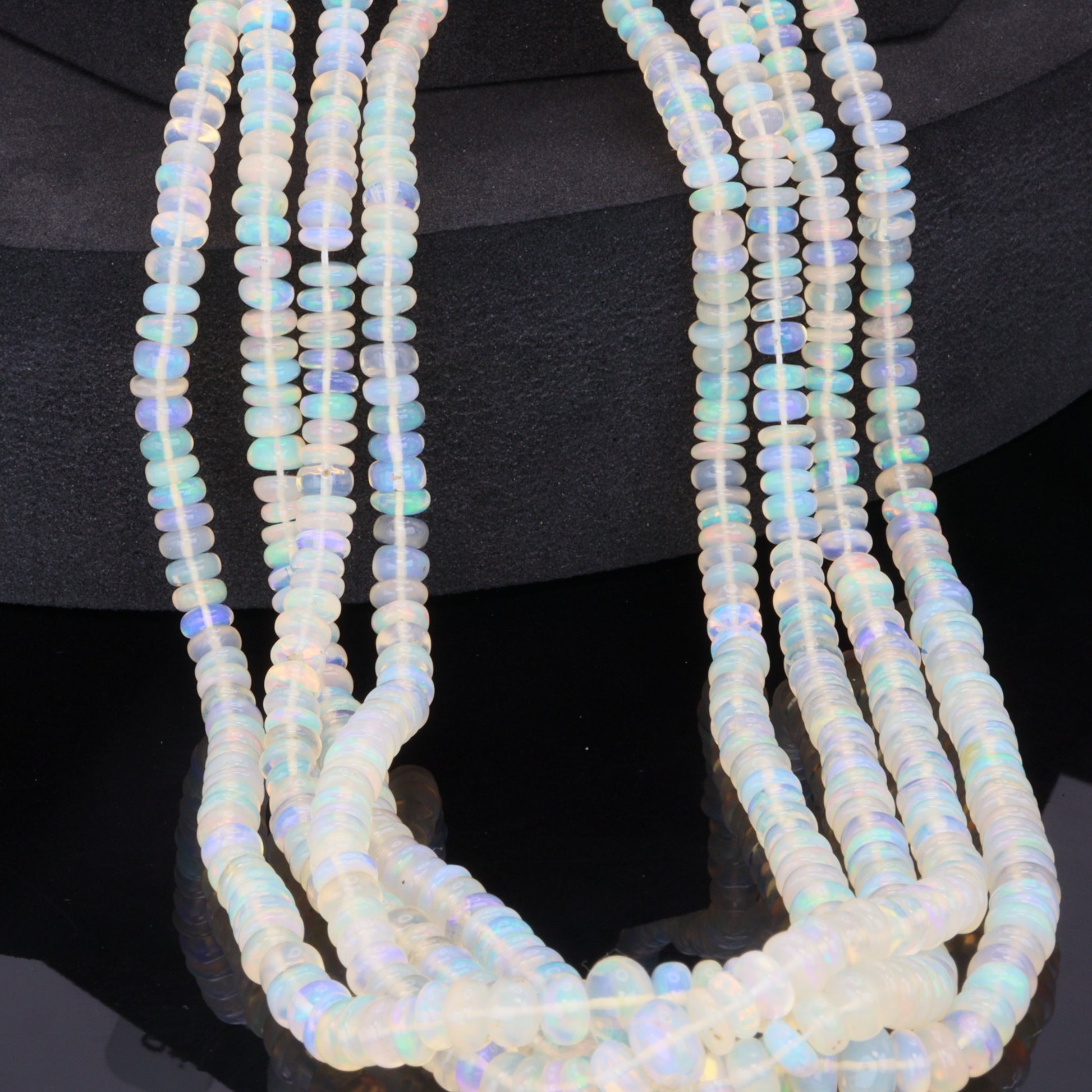 White Ethiopian Opal 4mm - 5mm Smooth Rondelles Bead Strand