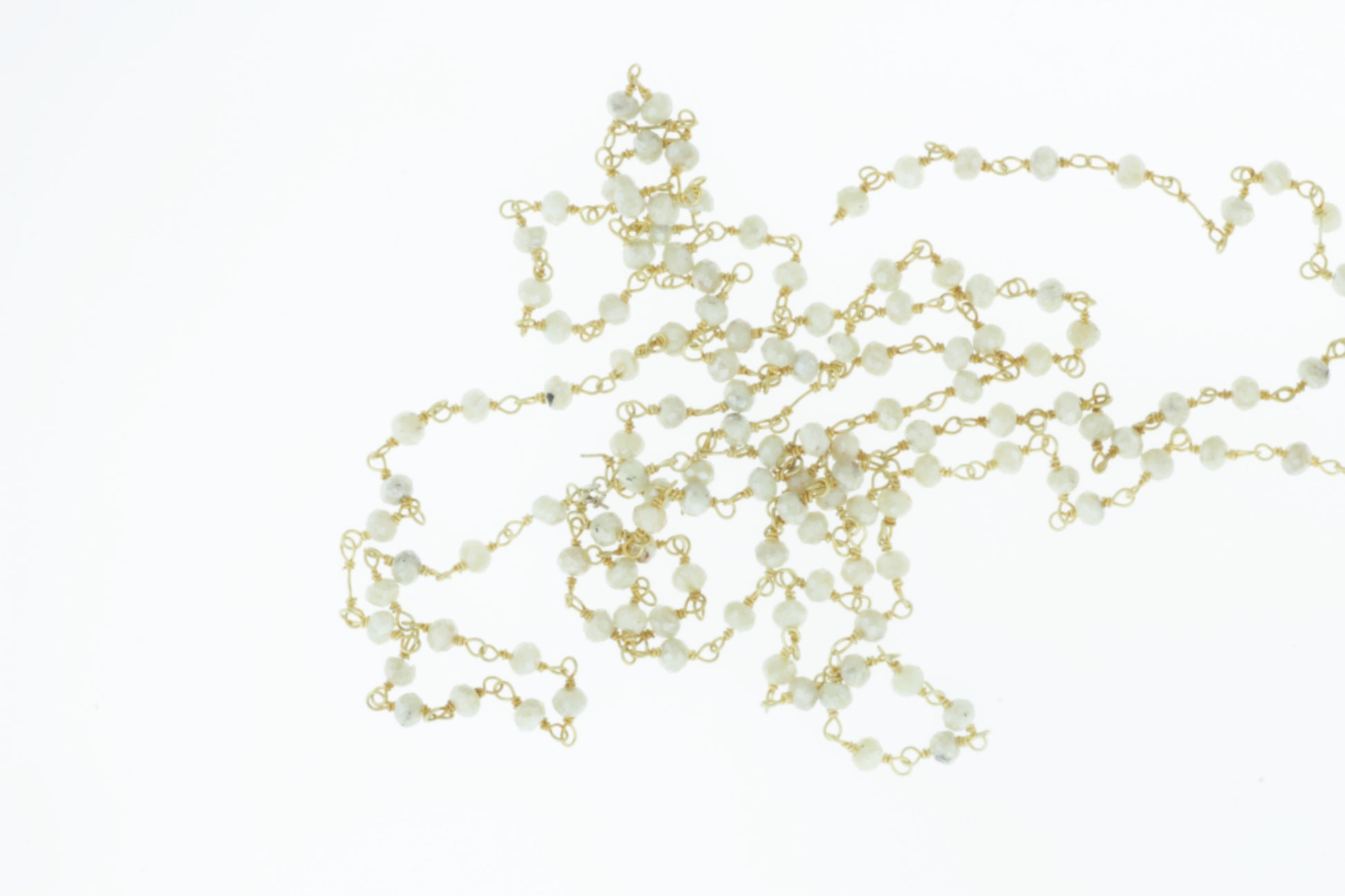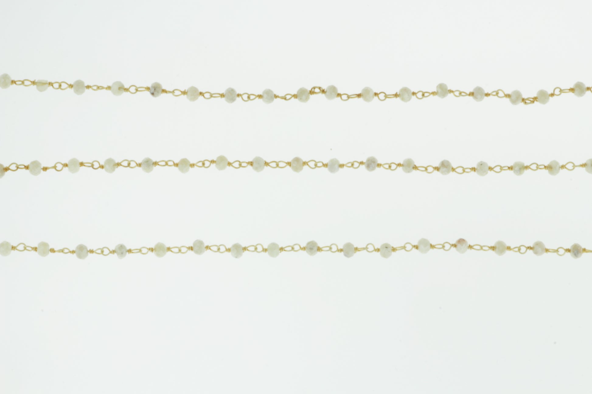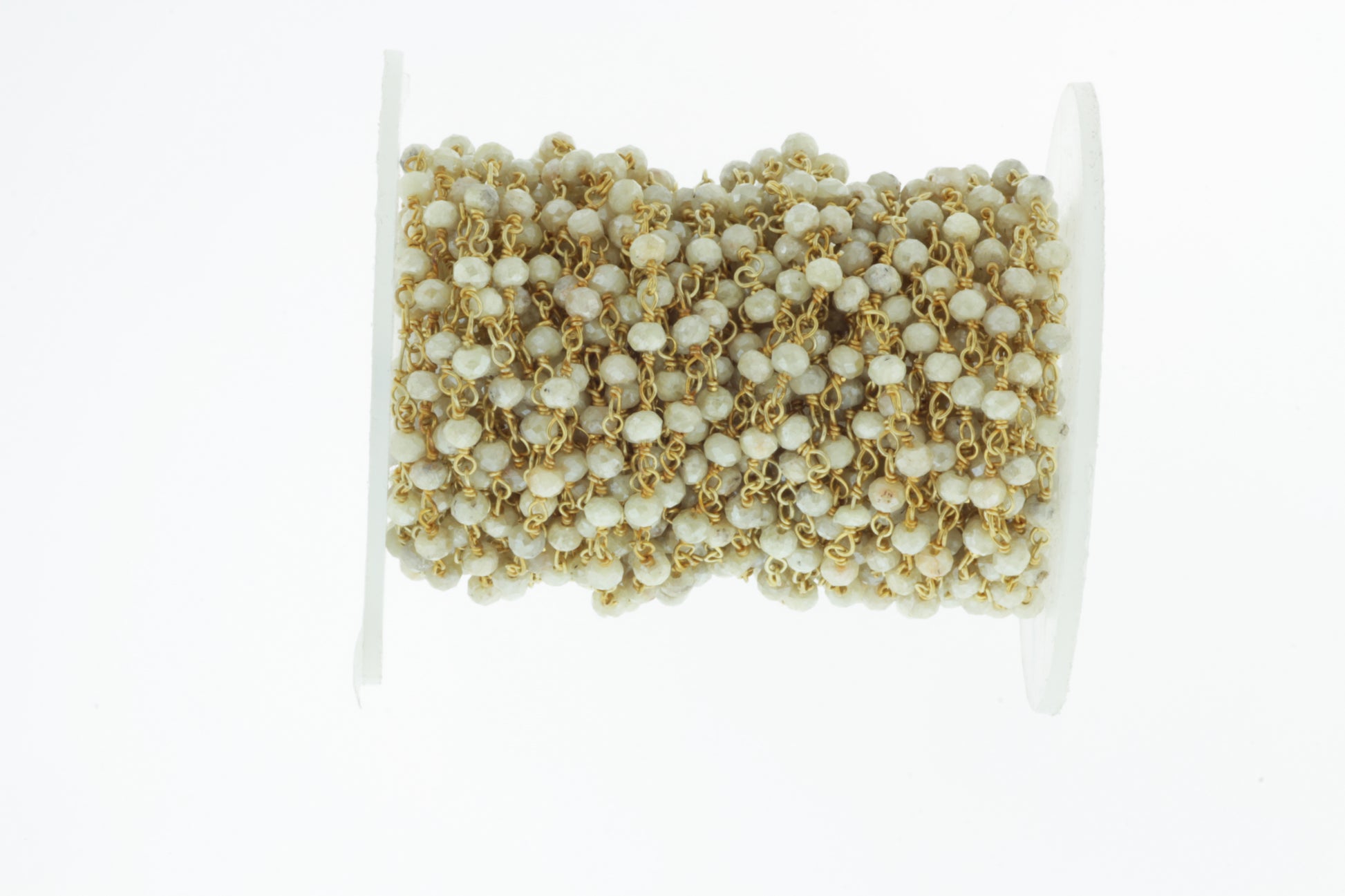 White Silverite 3mm Faceted Rondelles Rosary Chain Sterling Silver with Gold Plating Wire Wrap Chain by the Foot