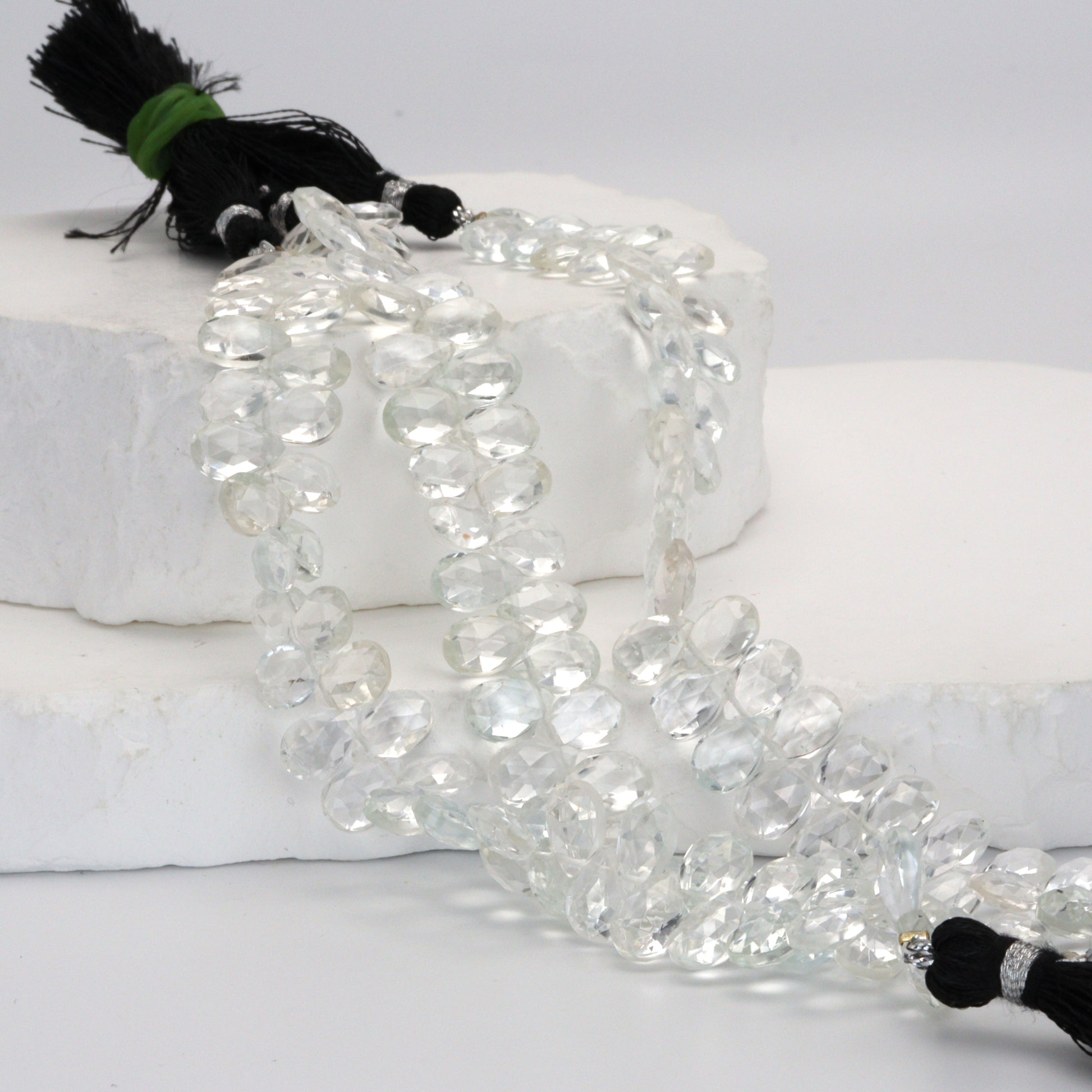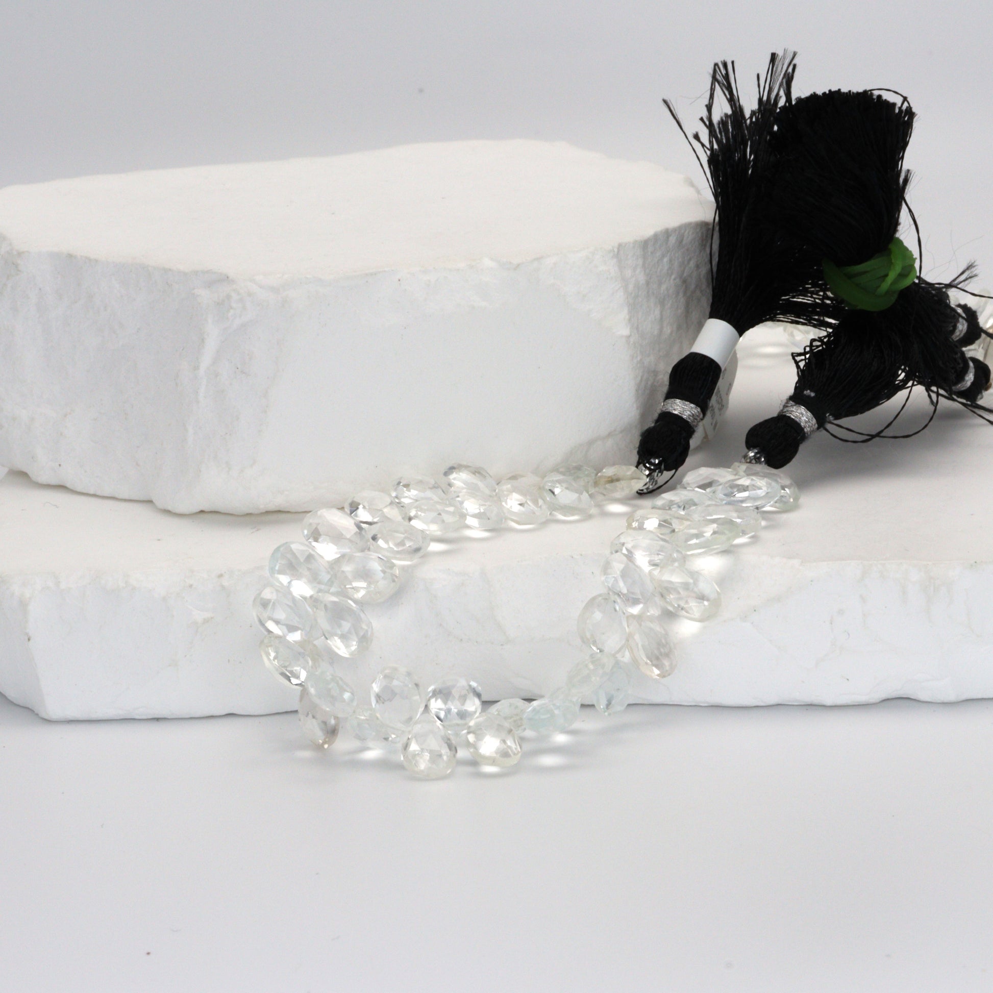 White Topaz 9x6mm Faceted Pear Shaped Briolettes Bead Strand