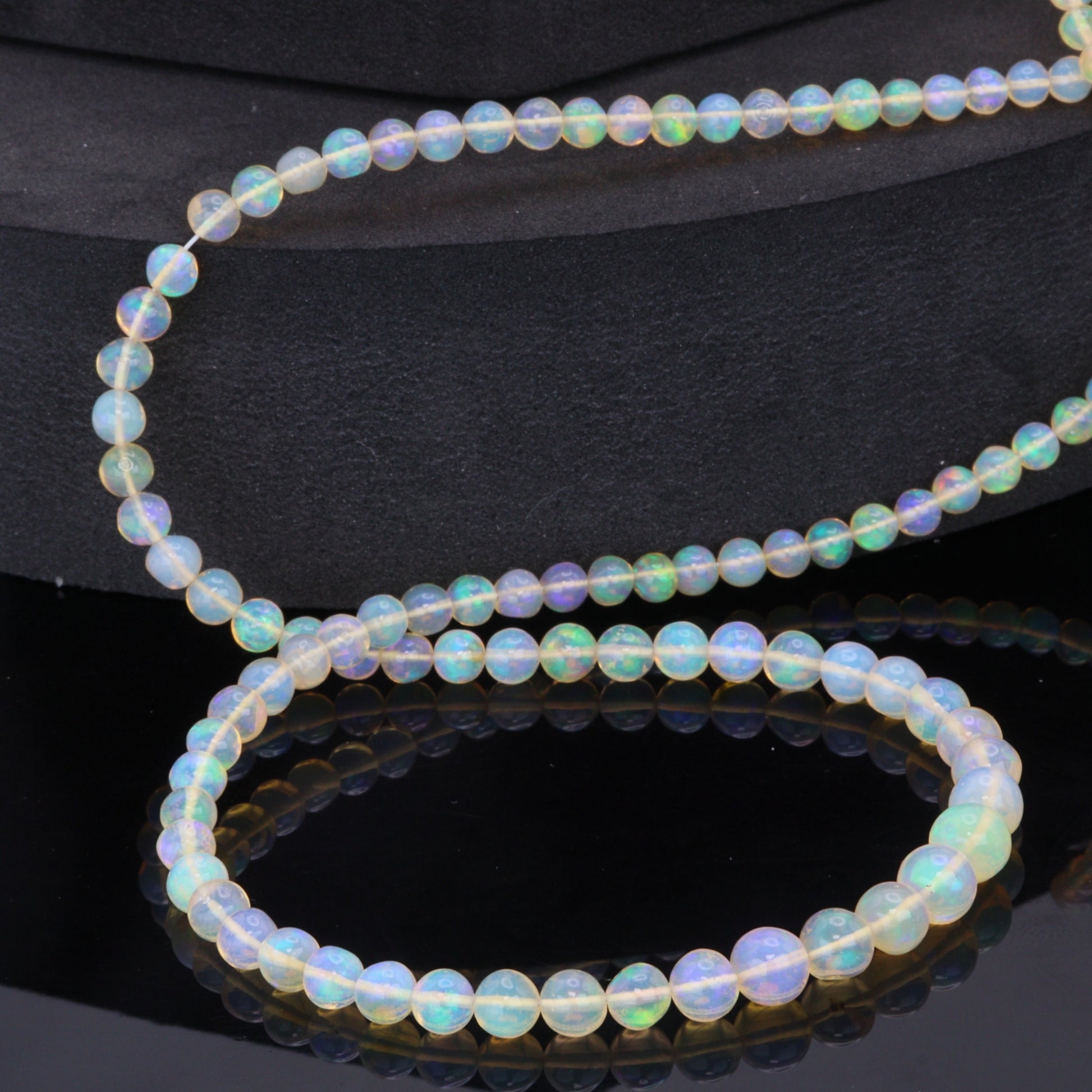 Yellow Ethiopian Opal 4mm - 5.5mm Smooth Rounds Bead Strand