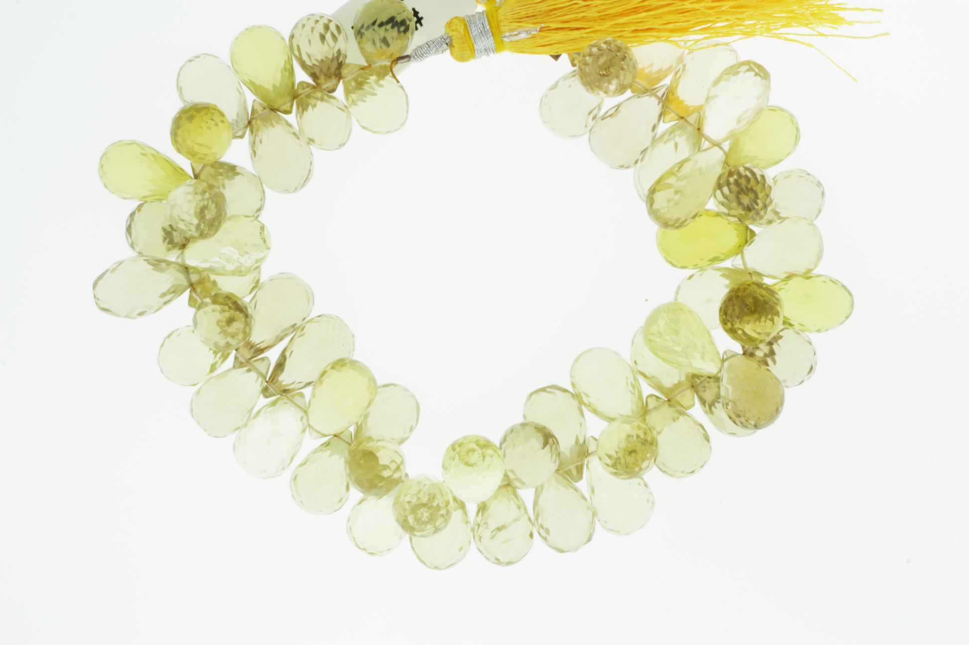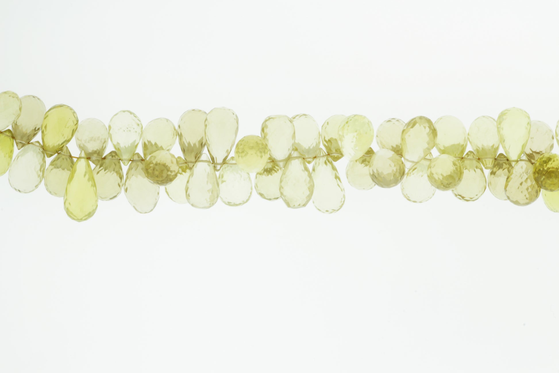 Yellow Lemon Quartz 12x7mm Faceted Teardrop Briolettes Bead Strand